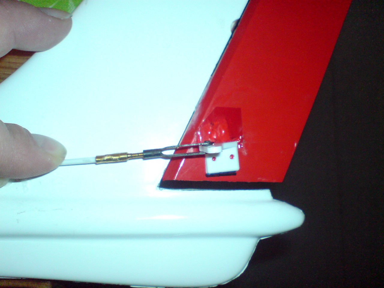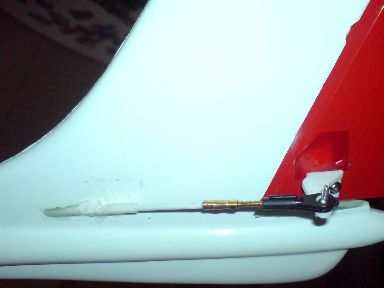 Ganz wichtig ist halt auch eine anständige Fixierung der Bowdenzughülle an möglichst vielen Punkten und direkt nach dem Servo, bzw vor der Anlenkung. Falls da im Rumpf an unerreichbarer Stelle ein Problem sein sollte gibt es einen ganz einfachen Trick: Ein dünnes Schaumgummi mit Epoxy tränken und durchkneten, dann in den Rumpf drücken. Das ist eine verhältnissmäßig leichte und Bocksteife Fixierung die man mit einem Stöckchen überall higedrückt bekommt.