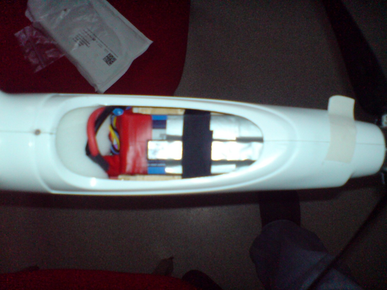 Habe momentan noch mal 60g auf den Lipo getappt,somit habe ich 160gr Blei in der Nase das ich auf einen SP von ca.70-75mm komme.