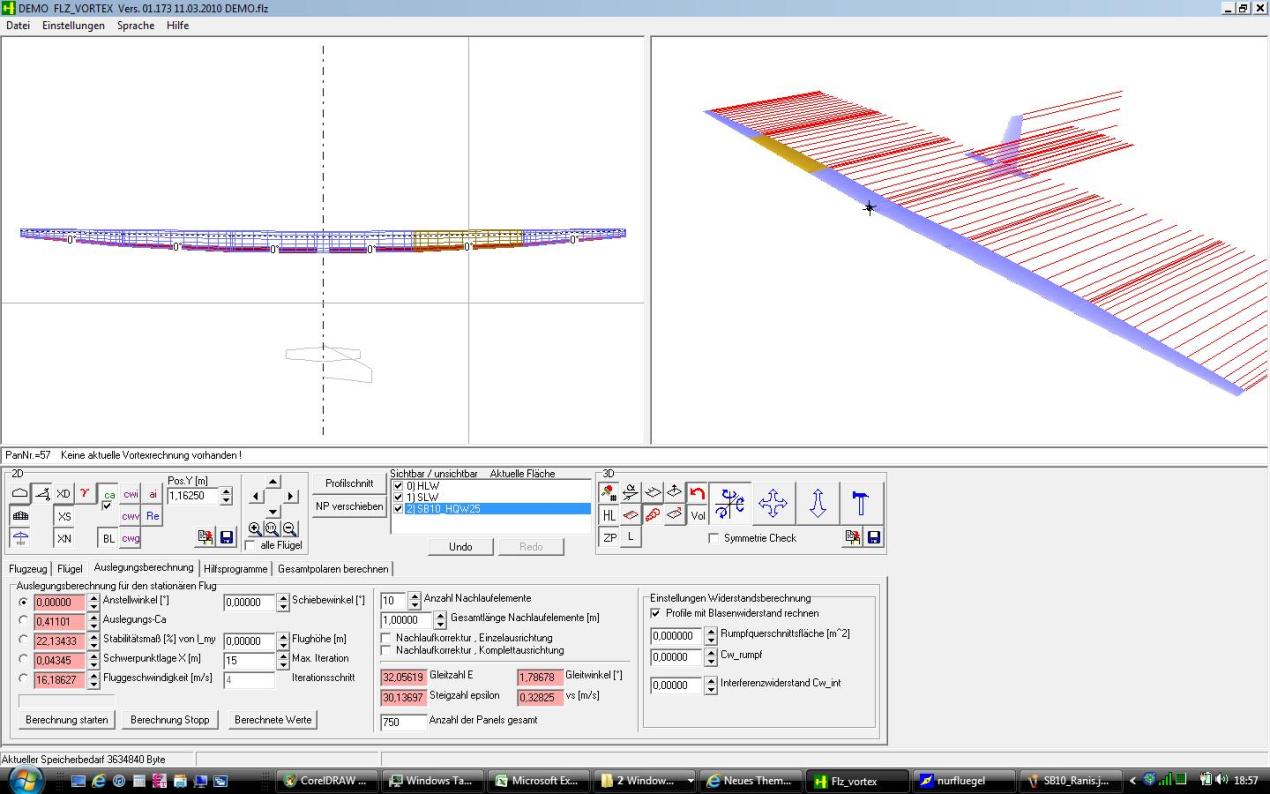 Inzwischen hab ich angefangen die Flügelpolare für einige Profilstraks zu rechnen.