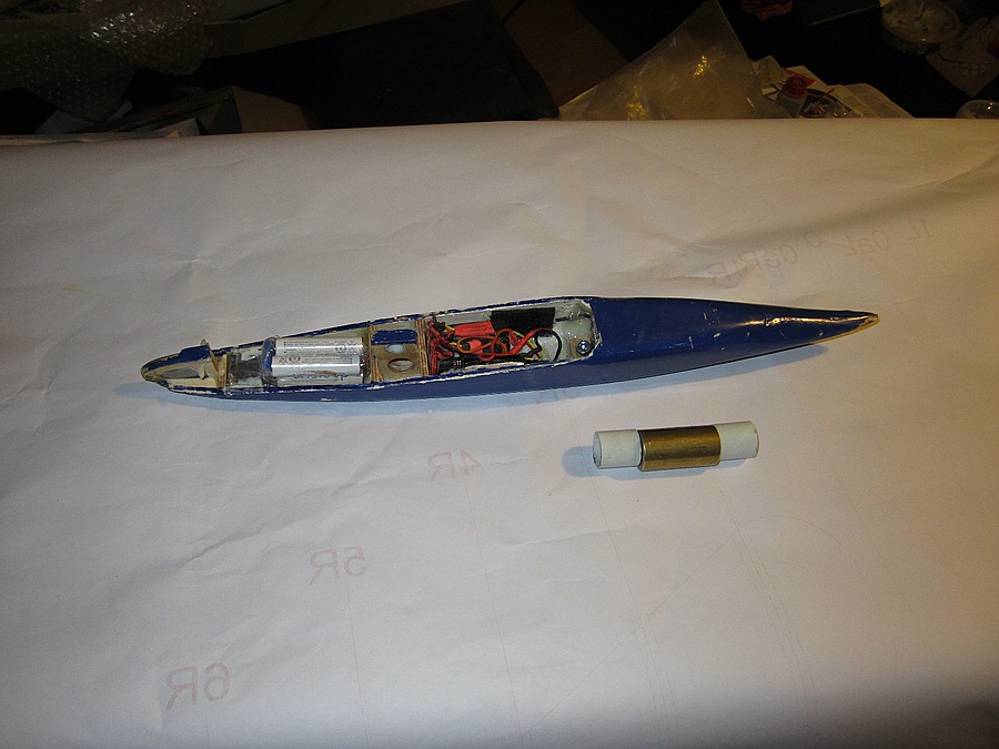 Die Maße der Ballast- Messingzylinder sind je d x l = 20 x 38 mm, 2 x 40 mm Länge geht auch noch ohne Schwerpunktverschiebung rein. Gewicht je hier je 97 Gramm.
