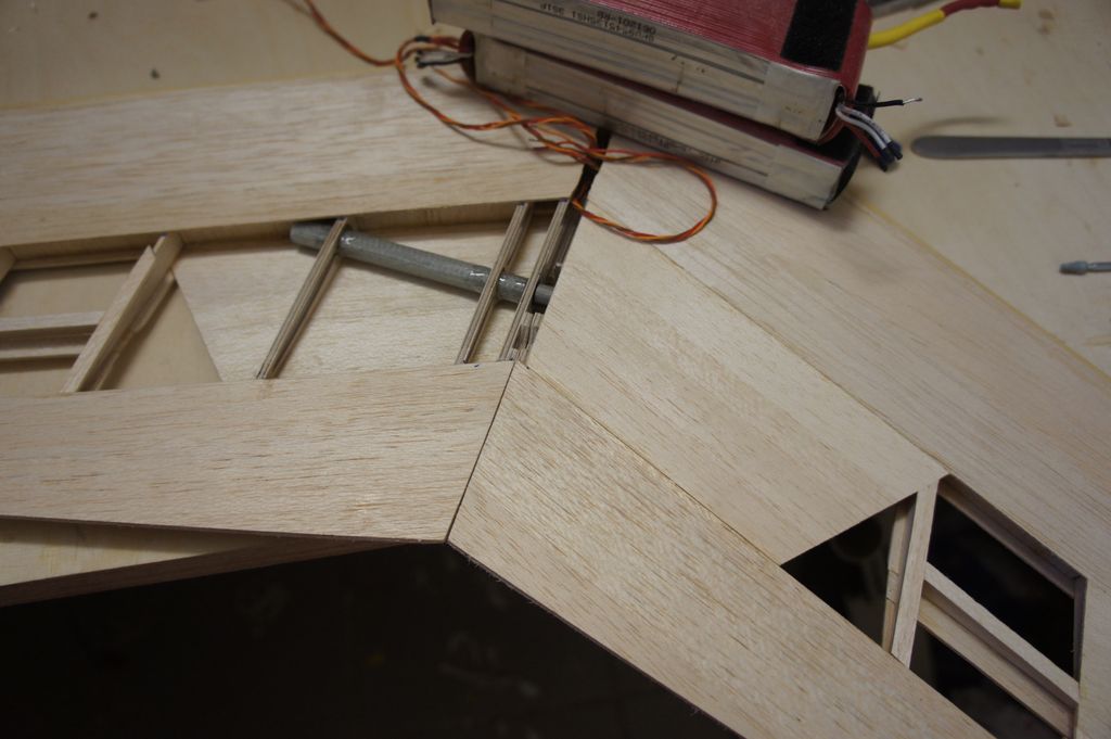 Ich musste ca. 1 mm an der 2. Sperrholzrippe das Loch nach hinten verlängern. Jetzt passt alles und ich werde am WE alles verkleben.