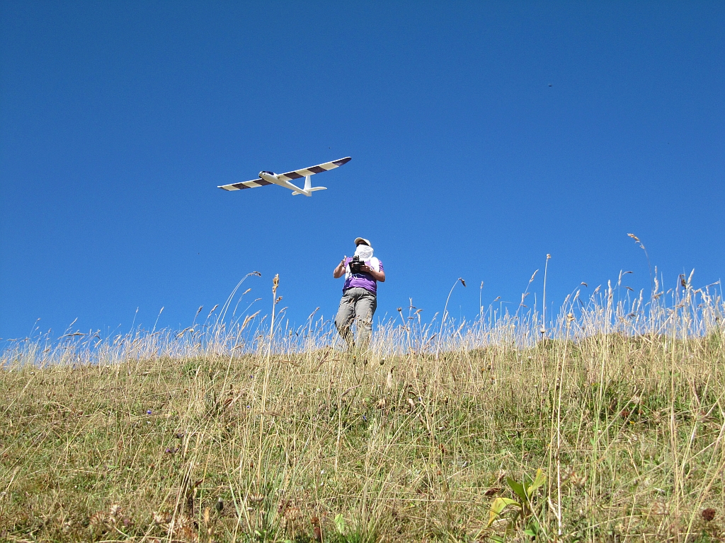 Das fliegt in der Thermik so brav wie die 5kg leichtere Version (knapp vor 11kg hatte der Prototyp, den jetzigen kann ich vorerst nur schätzen mit ~16kg, aber die sind genau richtig) [EDIT: 18,5kg sind´s nun wirklich] und wenn man es dann aber mal von der Leine lässt....