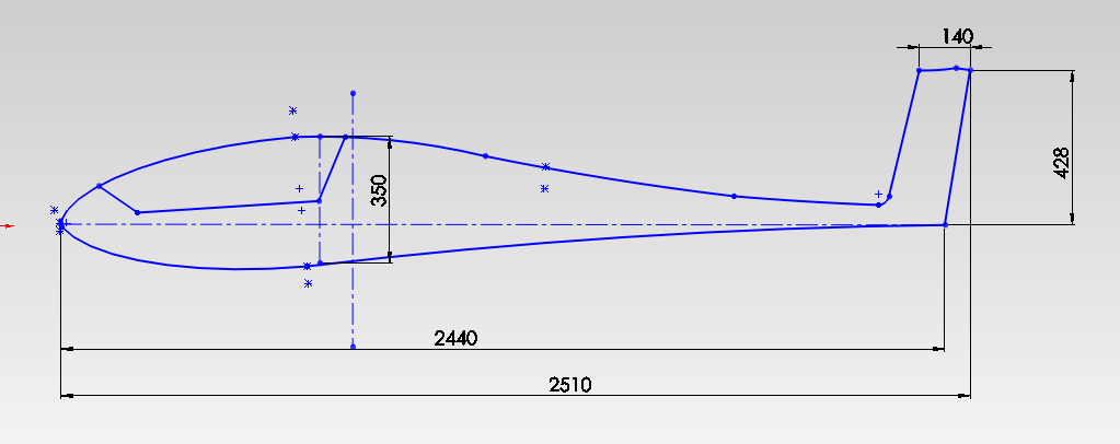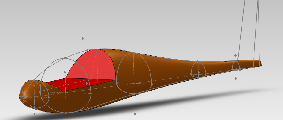 So nach dem nun die spannten eingezeichnet worden sind habe ich nun die ersten Volumen erzeugt, danach geht’s ans Leitwerk ein zeichnen .
