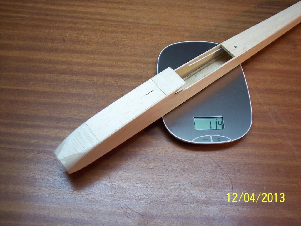 Das Abflugewicht hat sich um genau 100g erhöht und komme somit auf 570g mit dem Elektrorumpf. Der Segler wiegt 470g.