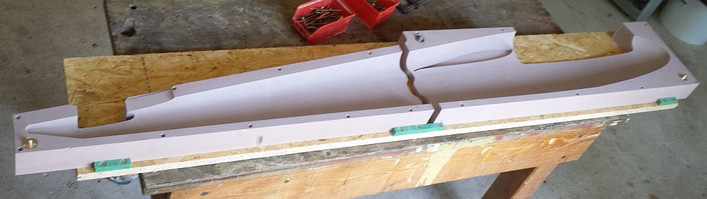 Wenn man in MDF fräst ist es aber schon möglich mehrere Teile zu fräsen und vor dem schleifen mit Paßfedern oder ähnlichen Fixierteilen zusammen zu fügen, Christian hat das mit den größeren Rumpfformen ja auch schon so gemacht.