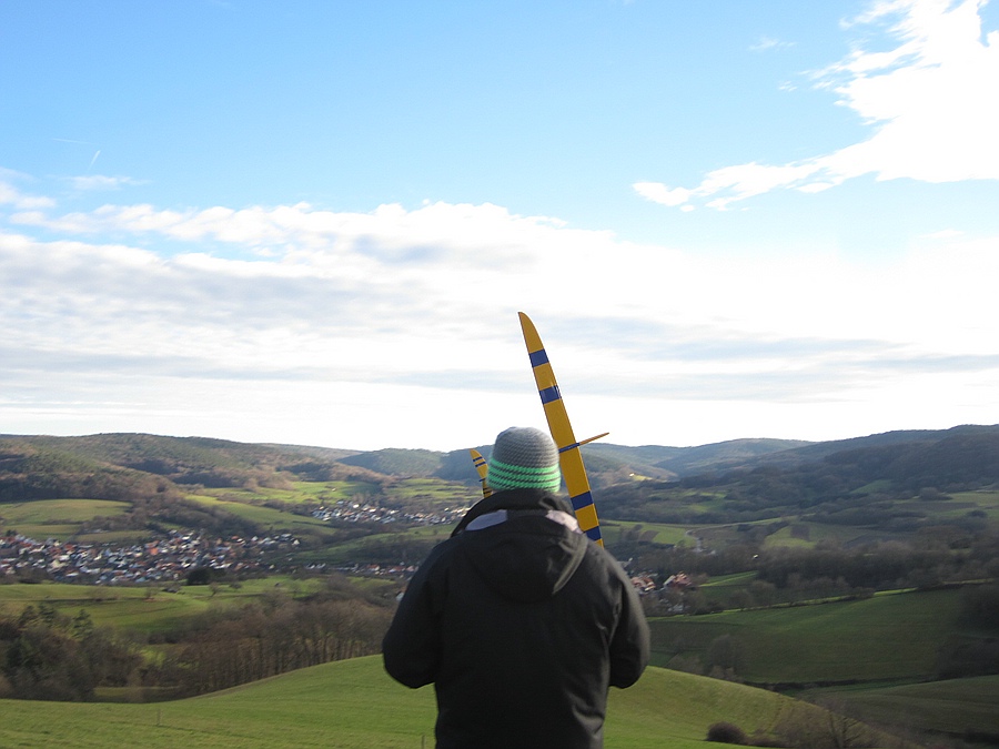 Ich war heute doch nochmal für eine Stunde am Vereinshang ( Tobi war auch da ) . Dort hat es heute FETT getragen :D ! War aber danach gründlich durchgefroren, weil ich in der Hektik des Aufbruchs sowohl Kappe, als auch Skiunterwäsche vergessen hatte :oops: . Tobi hat recht : wären echt brauchbare Erstflugbedingungen gewesen, obwohl es gar nicht danach aussah! Aber das kriegen wir auch noch.