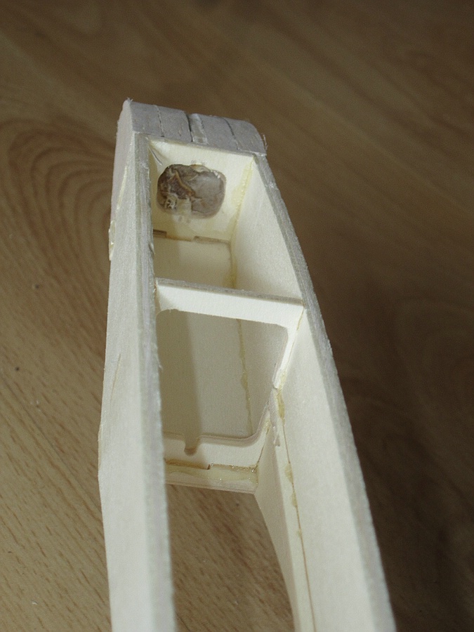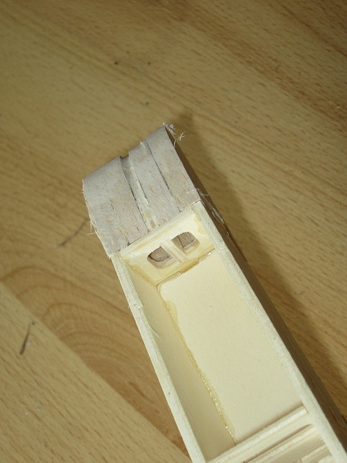 Nach dem fluchtgerechten ansetzen der zweiten Rumpfseitenwand können die Rumpfdeckel eingeleimt werden.