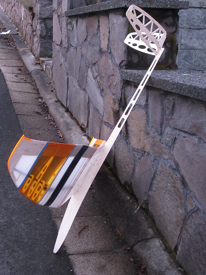 Die Kabinenhaube ist wie beim K-Rumpf aufgebaut, aber noch ein bisschen schlichter ohne Riegel, zur Befestigung soll ein dünner Fedestahldraht oder 2 mm Kohlestab dienen.