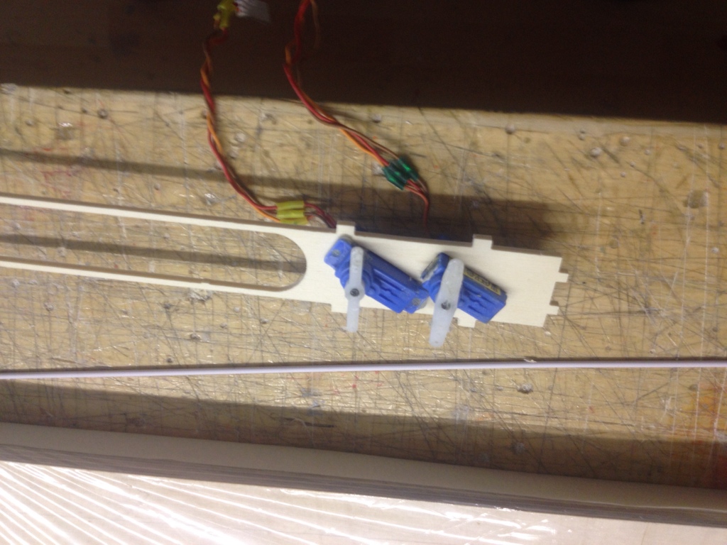 eigentlich wollte ich es mit L-Biegung haben wie oben bei der Clara, aber damit die Gestänge bei voll Höhe im Loch bleiben müssten sie so lang sein dass die Gefahr besteht dass sie sich um die Neutralstellung rum gegenseiteig blockieren.