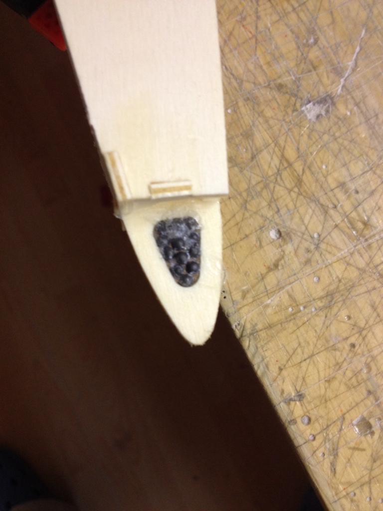 Da ich ja noch einen leichten Flügel bauen möchte, denke ich das man mit 600gr hinkommt. Habe jetzt insgesamt 35gr Blei in der Nase!