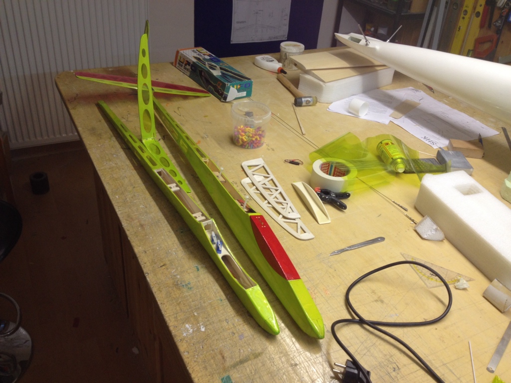 Bilder mit der inzwischen fertigen Bespannung gibts zum Erstflug ;-)