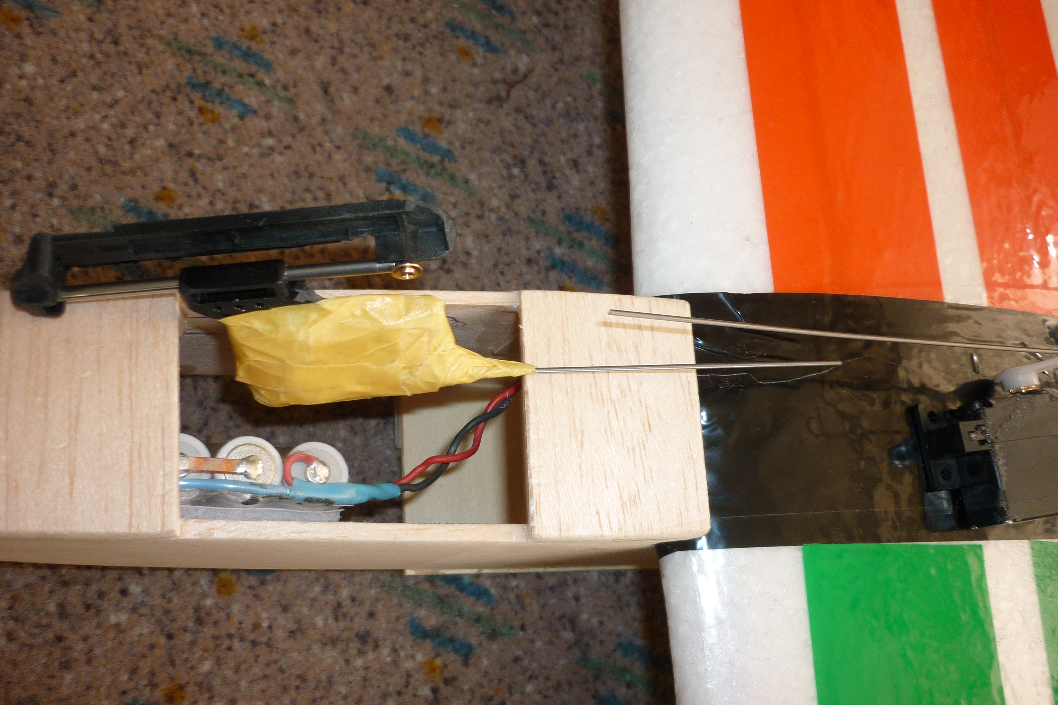 für meinen variablen Schwerpunkt hab ich ne Wippe in die Rumpfspitze eingeklebt...denk da werd ich so 30 g Blei festmontieren die ich dann max 2 cm vor und zurück bewegen kann... reicht das für 5 mm Schwerpunktverschiebung ?