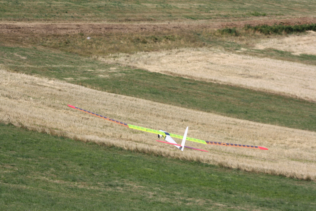 Heute das letzte Lüftchen vorm Regen mit dem Energic ausgelutscht. Mit DS-Unterstützung konnte ich mich ein halbes Stündchen halten obwohl es vorm Hang nicht mehr gereicht hätte, aber mit der ersten Regentropfen wars dann ganz vorbei. Trotz dem Gegenteil von Vollgas am Hang ist es eine interessante Fliegerei dynamisch auf der letzten Rille zu fliegen, besonders mit so einem extrem breitbandigen Modell wie dem Energic. Schade dass er wohl nicht mehr gebaut wird, den würde ich mir glatt "auf Vorrat" noch ein zweites Mal kaufen.