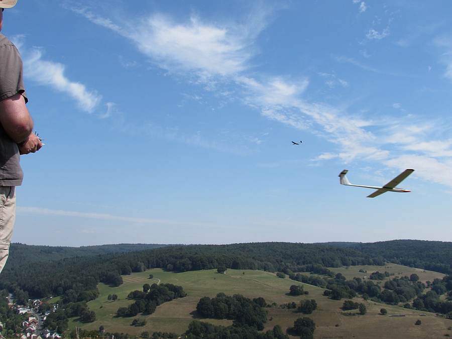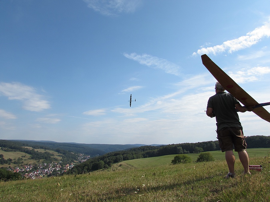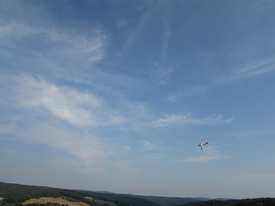 Na dann hoffe ich mal dass der Erstflug der beiden großen Kisten ebenso gut verläuft wie der zweite Erstflug des uralten gelben Salto von Paul nach dem entstauben und überholen. Einiges los am Osthang heute, hat Spaß gemacht, auch wenns zwischendurch öfter mal starkes Saufen hatte und bei ~ 200 m ein Deckel drauf war...ein sehr schöner Tag mit viel bruchfreier Fliegerei und Abschluß beim Hangwirt, denn der Modellpilot lebt nicht nur vom Fliegen alleinitalouwe hat geschrieben:Erstflug hat sich wegen erstens schlechtem Wetter und zweitens faulem Konstrukteur auf kommendes Wochenende verschoben. Da ist er aber fest geplant, zusammen mit Lorenzos sechs Meter ASH 26.