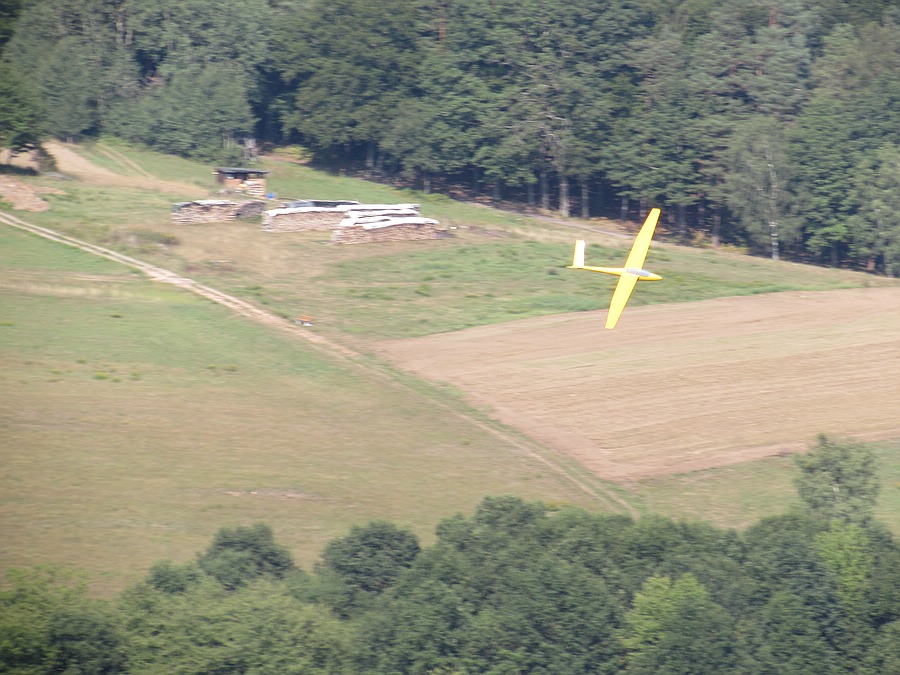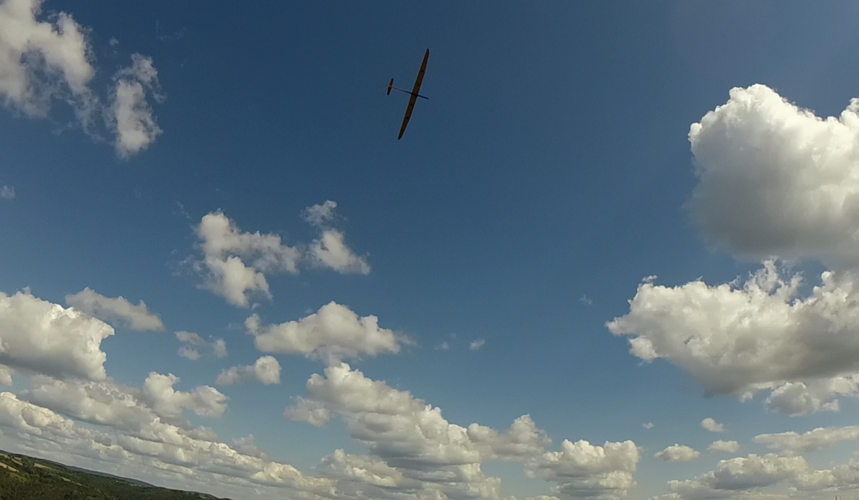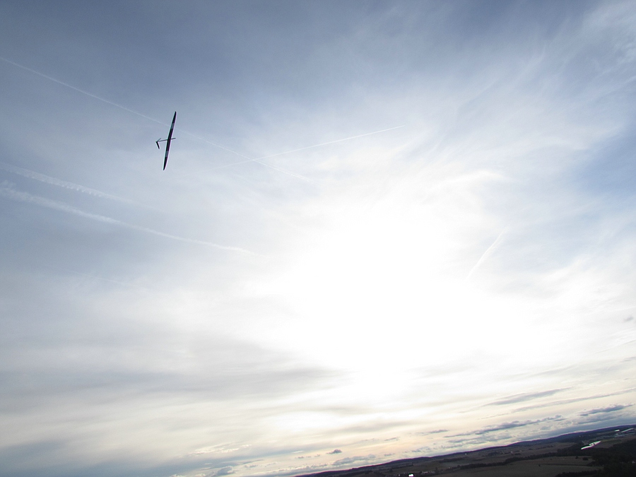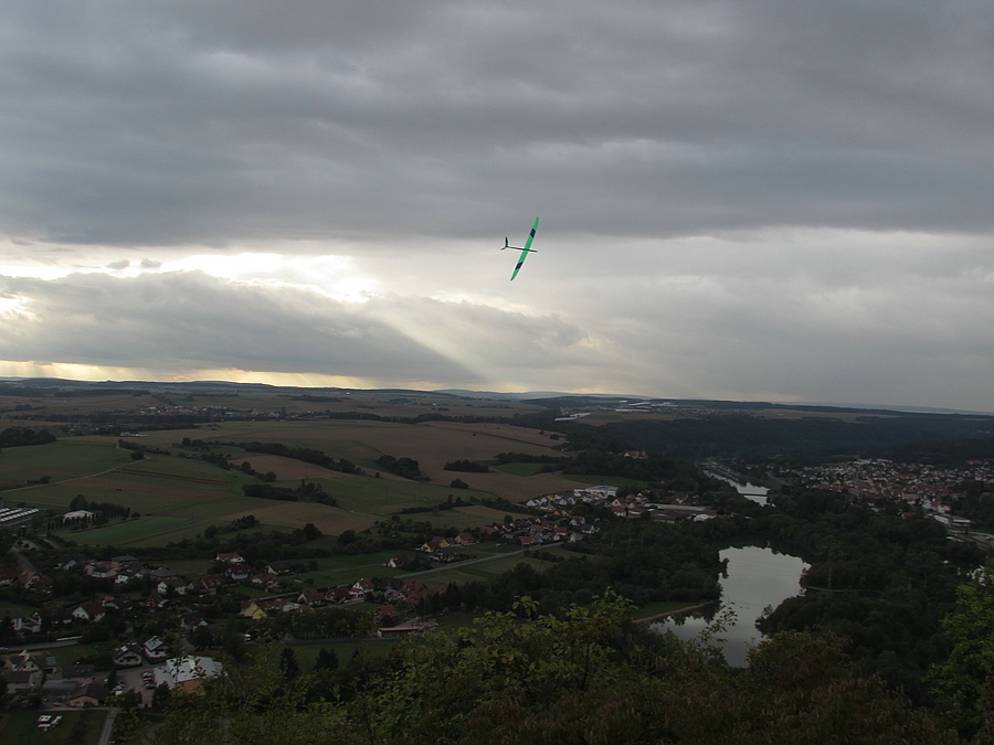 Heute zunächst durchwachsene Bedingungen am Felsen, es gab zwar Wind, aber der kam etwas links und es war sehr thermisch, dadurch gabs immer wieder Phasen mit wenig Tragen und sogar Saufen. Ab halb sechs drehte der Wind dann genau auf den Hang und die Abendthermik sorgte für gutes permanentes Tragen und ein sehr ruhiges Lee für den DS-Turbo, das Pfeifen des Shooter wurde die letzten 1 1/2 Stunden bis 19:30 nur ab und zu durch Scandera-Flüge unterbrochen, sehr Geil