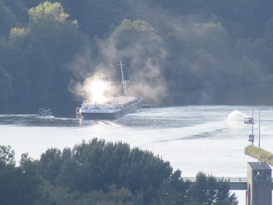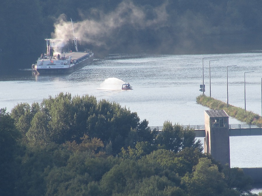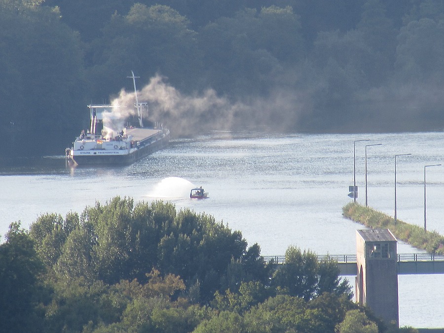 Auf dem Main brannte ein Schiff und die Feuerwehr setzte passendes Löschgerät ein um die Flammen und den Qualm unter Kontrolle zu bringen, doch scheinbar stoßen sich Feuerwehrmänner auf Booten und Flammen ab, je näher das Löschboot dem Brandherd kam, umso kürzer pinkelte das Löschwasser, den Brandherd erreichte der Löschwasserstrahl des Bootes bei diesem Einsatz nie, die Landfeuerwehr mußte die Gefahr vom Ufer her bannen