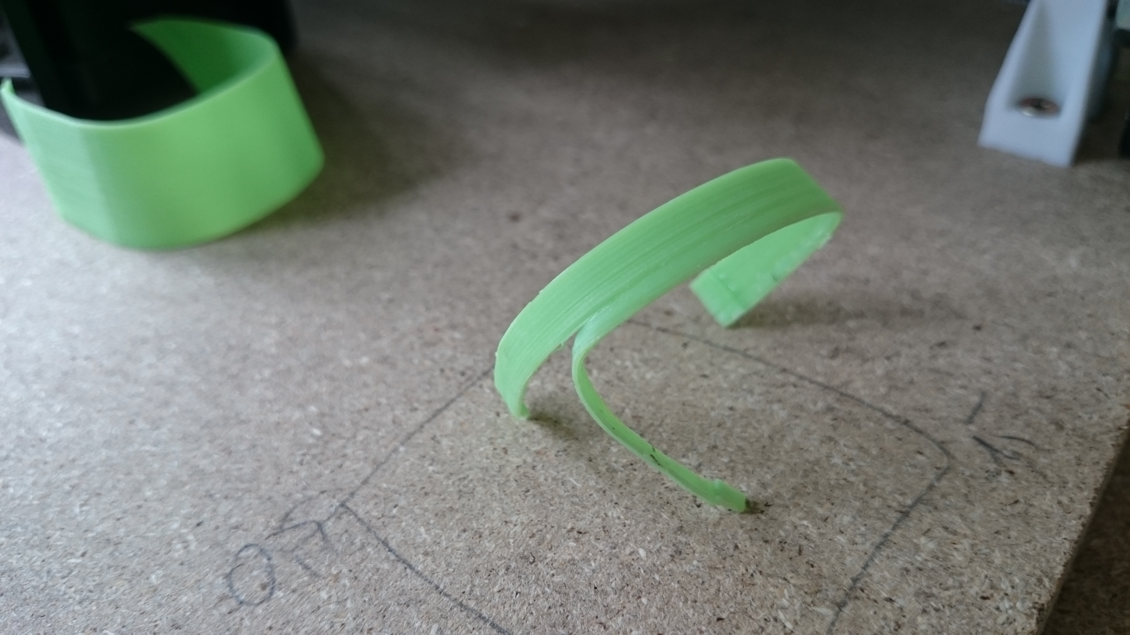 Wandstärke nur zwei Linien und die auch bestimmt zu kalt gedruckt mit etwas Kraft kann man sie so ausseinander ziehen und erkennt die Bahnen. Auf dem ersten Bild sieht man auch die weisen Punkte also das nur da die nächste Lage gehalten hat. Die Klebenaht ist deutlich fester und es reist dann doch wieder eine Bahn daneben. Ich probiere dann mal drei und heißer gedruckt dann kommt die Wanstärke auf ~1,3mm, ohne Bauteilkühlung so das sich die einzelnen Layer besser mit einander verbinden können.