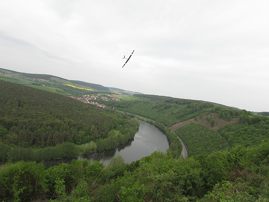 Heute mit 3-4 Bft gute Bedingungen am Büro-Osthang, deshalb musste ich trotz spätem Feierabend noch mal raus und hab 1 1/2 Stunden Spaßzeit mit dem Avatar zusammen gebracht. Leider keine Fotos von den 4 Milanen die mit meinem Flieger gleichzeitig in der selben Thermikblase gekreist sind, aber ein paar Mützenkamerabilder vom Avatar solo.