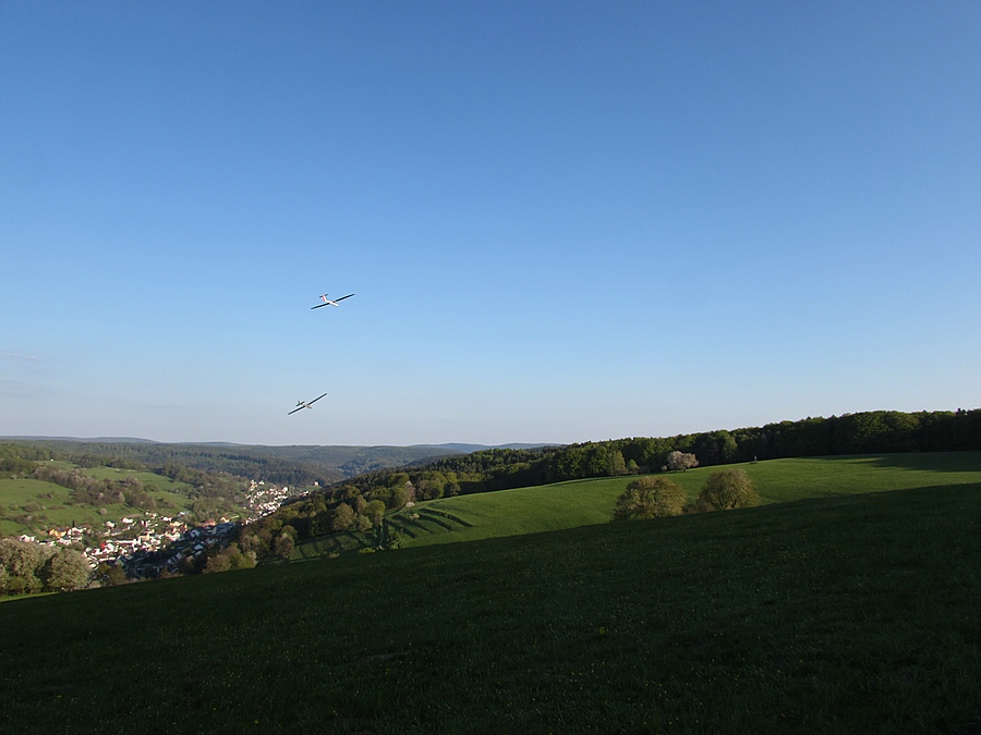 Der Höhepunkt zum Schluß, 3 x Dickschiff mit 4 m+ Spannweite gleichzeitig in der Abendthermik: SB14, Foka und Mistral :)