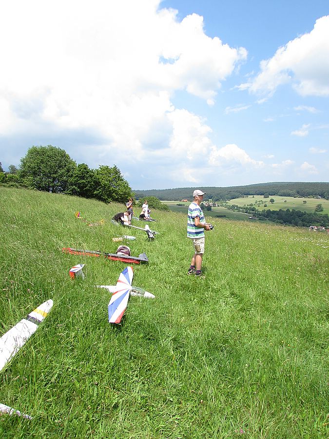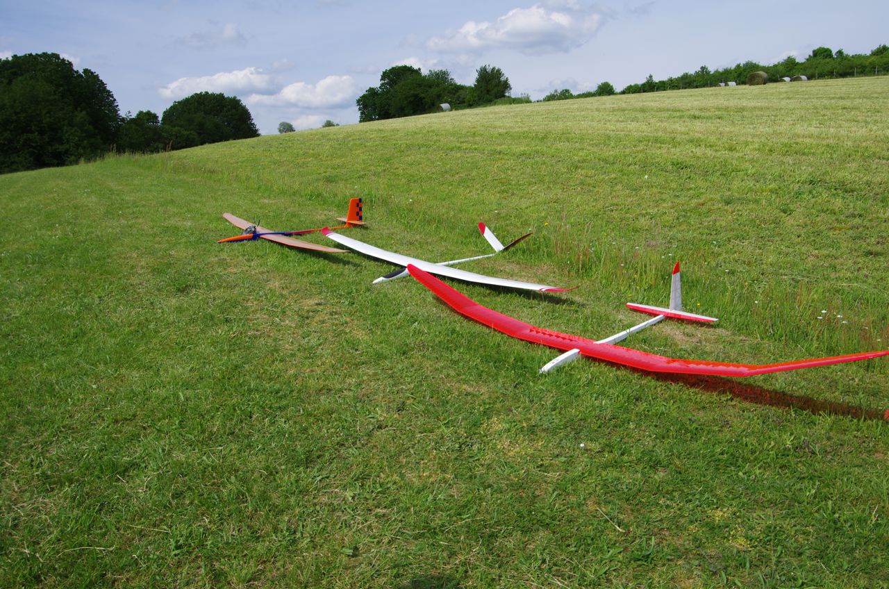 Da ich am kommenden Wochenende bei dem RES-Wettbewerb etwa 900 m Luftlinie von dem Hang nicht mit fliege brauchte ich den Hochstart nicht trainieren, hab aber schon mal die Milane auf den Modelltyp eingestimmt dem sie die Thermik am Sonntag anzeigen sollen :P