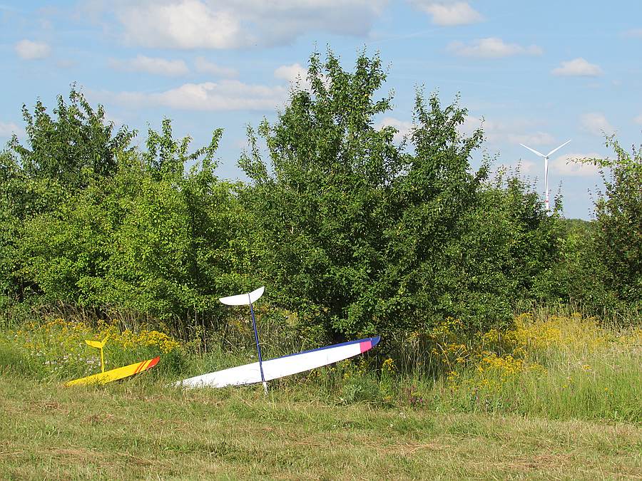 Heute am Osthang gute thermische Bedingungen für den SRTL von Lutz und meinen Avatar 8-) ....bis der Wind wegen einem nahen Gewitter auf Süd drehte und die Thermik einschlief.......