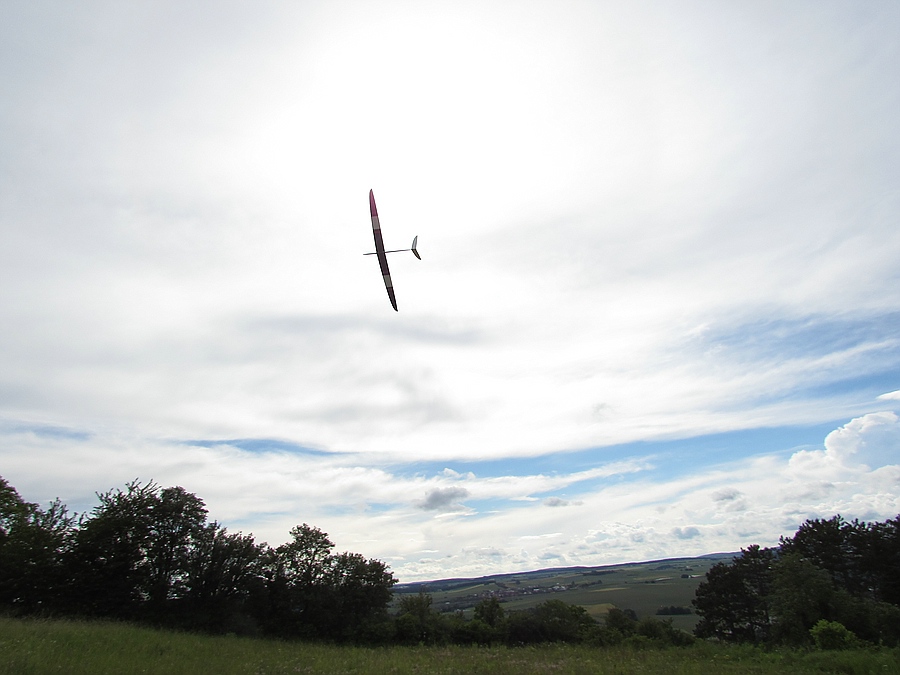 Da ich am kommenden Wochenende bei dem RES-Wettbewerb etwa 900 m Luftlinie von dem Hang nicht mit fliege brauchte ich den Hochstart nicht trainieren, hab aber schon mal die Milane auf den Modelltyp eingestimmt dem sie die Thermik am Sonntag anzeigen sollen :P