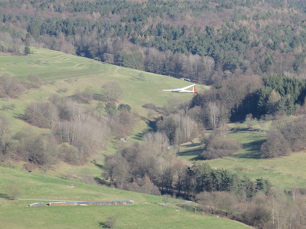 Naja, ganz so schlimm wars zum Glück nicht, aber die Bedingungen wechselten alle paar Minuten zwischen fast Windstille und ordentlichen 3 - max 4 Bft, so dass man ständig zwischen zügigem DS mit Heizen auf Augenhöhe vorm Hang und Thermikfliegen wechselte.