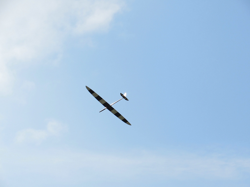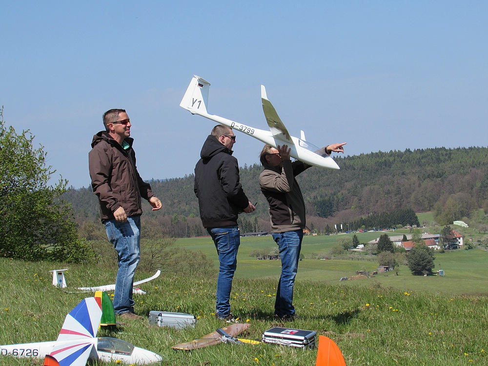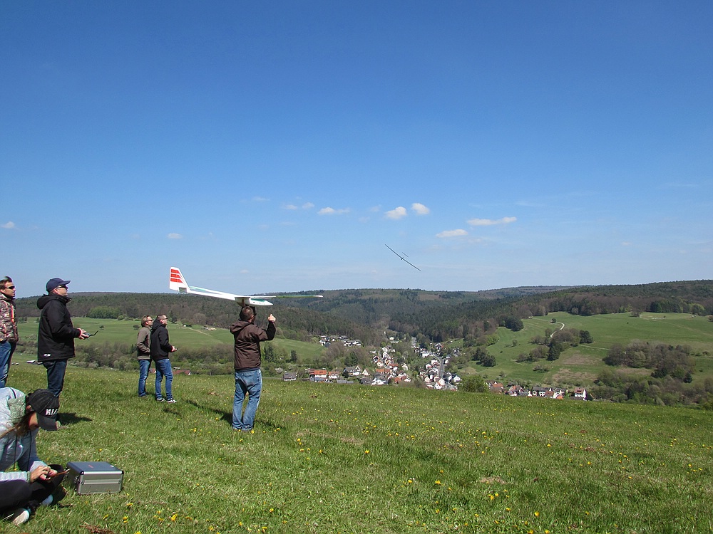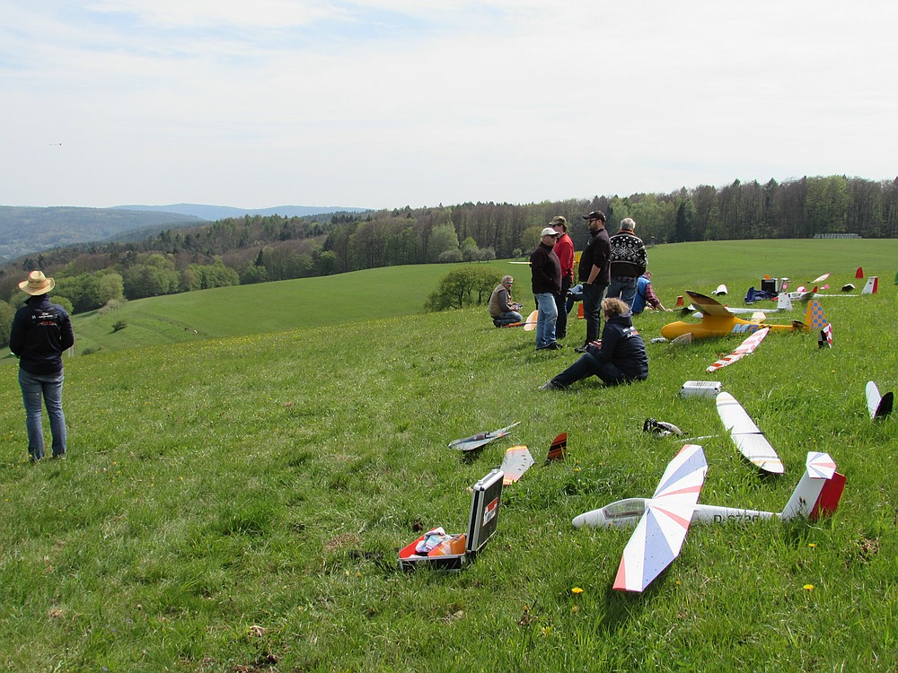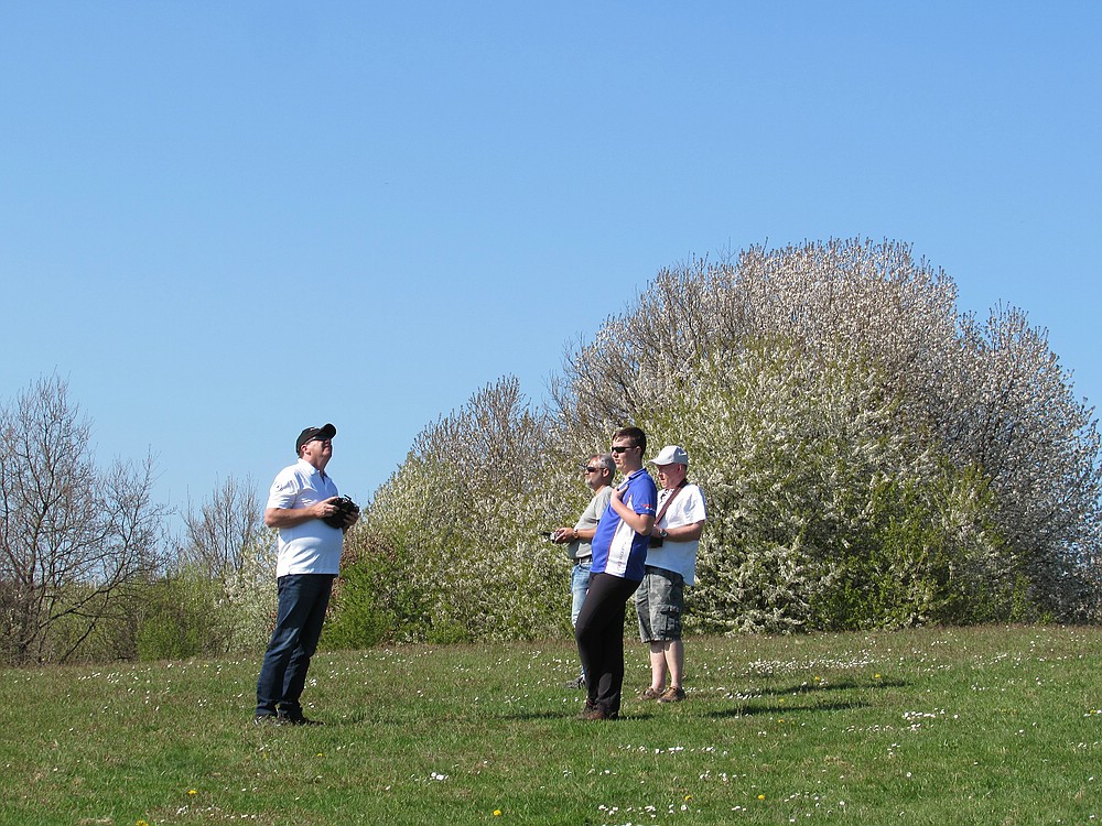 Dementsprechend war heute vorsichtiges, konzentriertes Fliegen mit leichterem Gerät angesagt. Und so ist doch wieder einiges an Flugzeit zusammengekommen. In den Flugpausen wurde mit den netten Kollegen gefachsimpelt, und wir hatten einen sehr kurzweiligen und schönen Nachmittag bei bestem Wetter mit angenehmen Temperaturen. Davon gerne mehr !