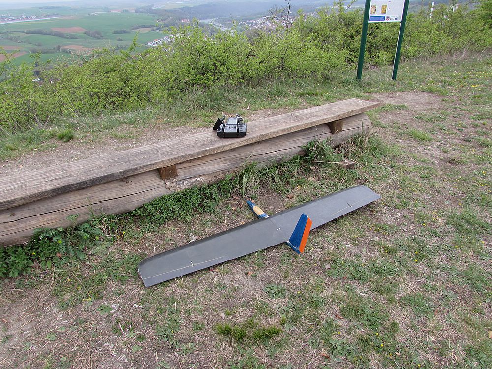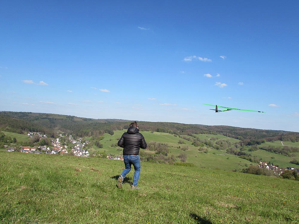 Heute war das dynamische Tragen und in den Phasen mit weniger Wind die Thermik echt Klasse, ich konnte sogar den 1,45 kg Stormchaser 2 x aus dem Handstart fliegen.