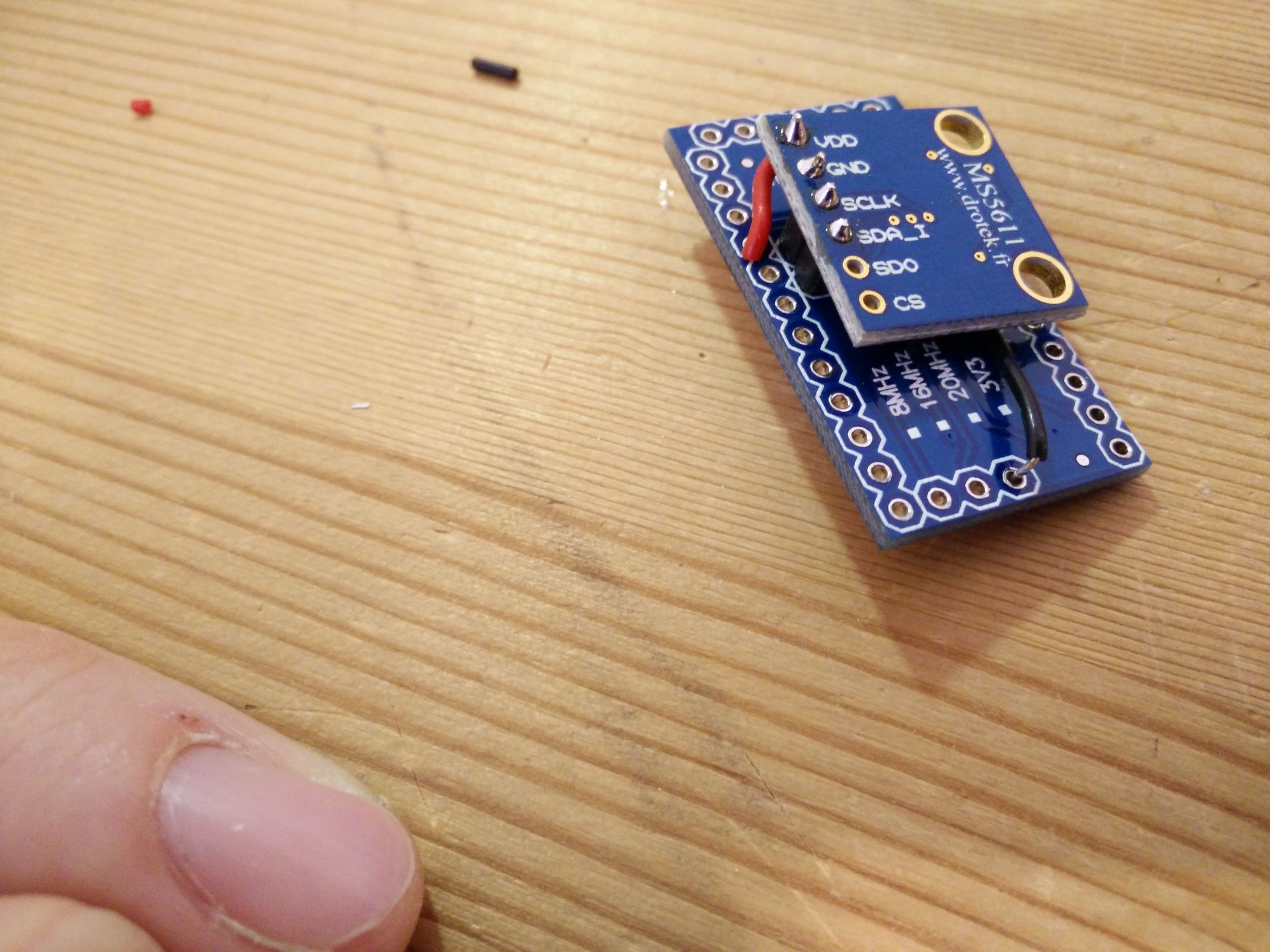 Der Arduino ist irgend ein billiges „Arduino Pro Mini 5V ATMega-328P 16mHz“-komapatibler Abklatsch. Das spielt tatsächlich keine Rolle — die sind quasi alle gleich. Sind halt Die GY-63 MS5611-Module hab’ ich von einem Händler aus Frankreich von EBay genommen bei dem ich vermute keine Fake/Ausschuss-Chips zu bekommen