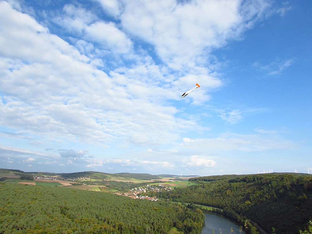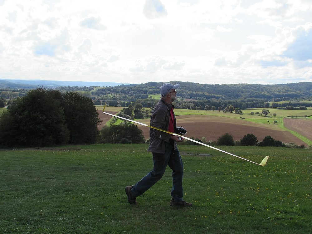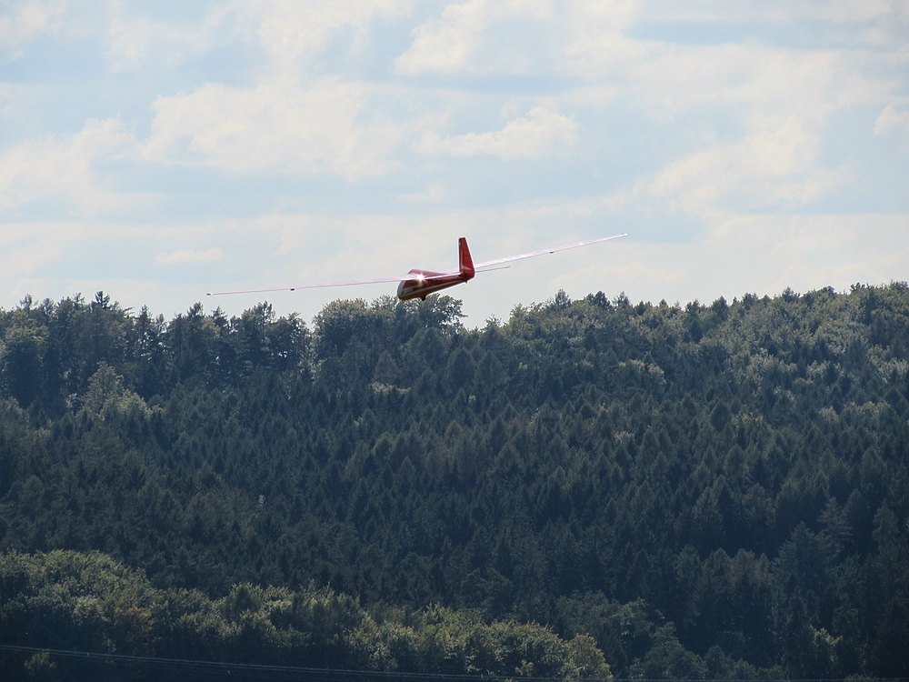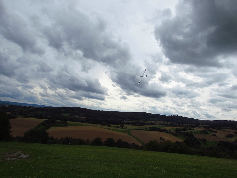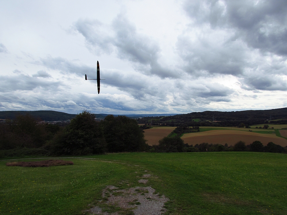 Der Wetterbericht hatte eigentlich für heute ziemlich viel Regen vorausgesagt, aber außer ein paar Tropfen blieb es trocken und als sogar die Sonne raus kam lockte sie mich zum Spessartsegler-Vereinshang aus der Werkstatt.