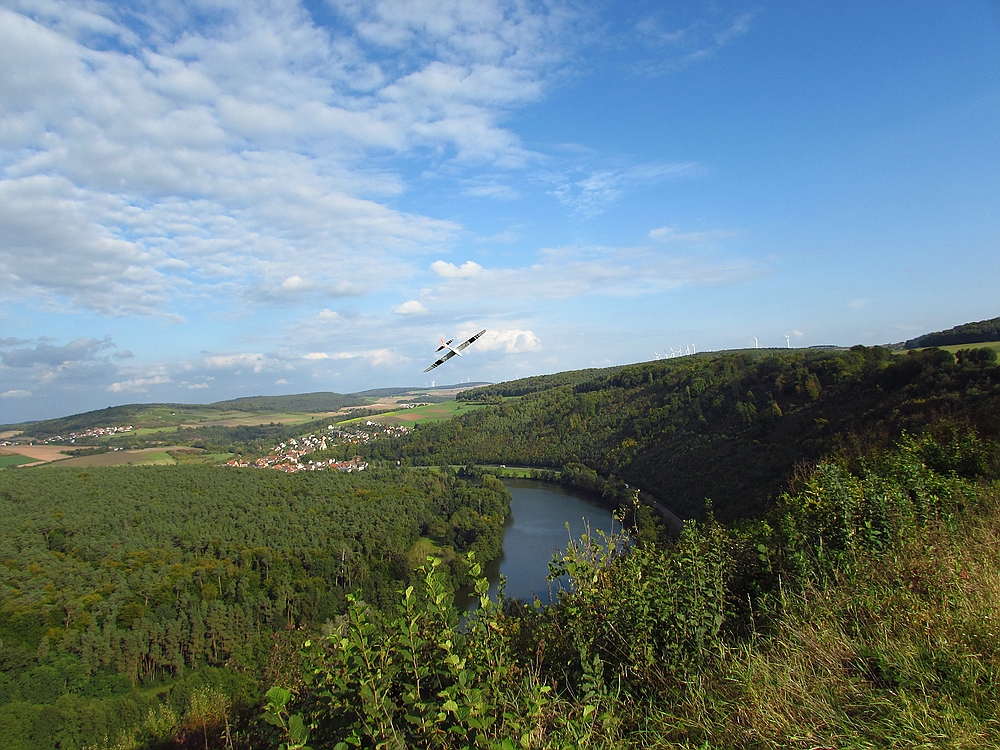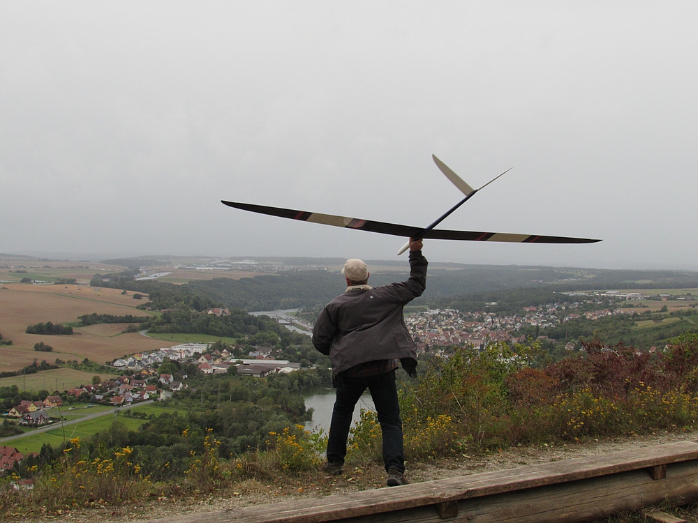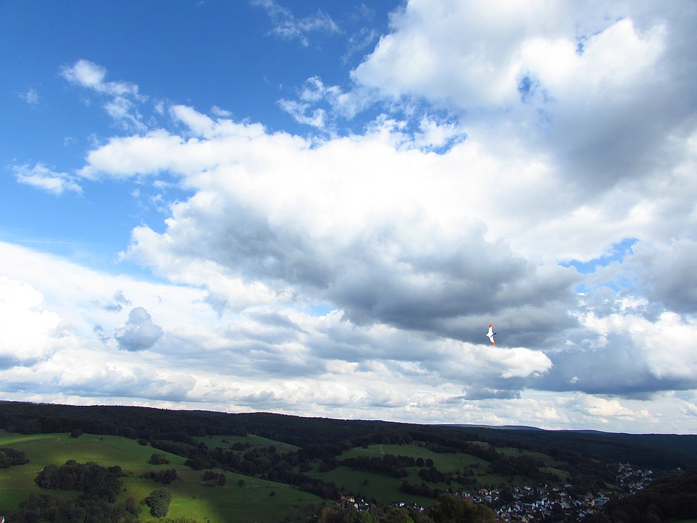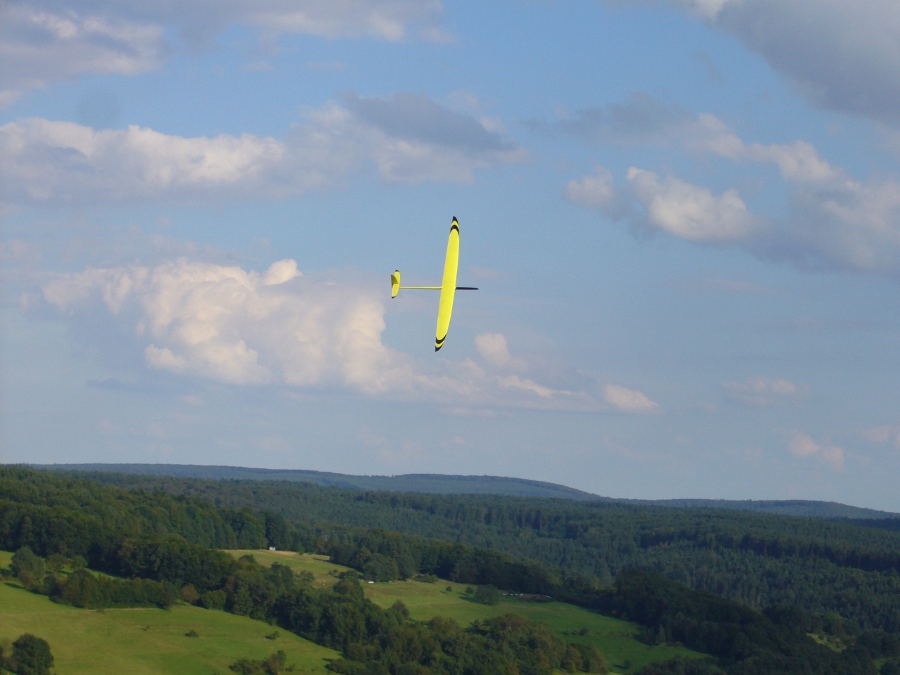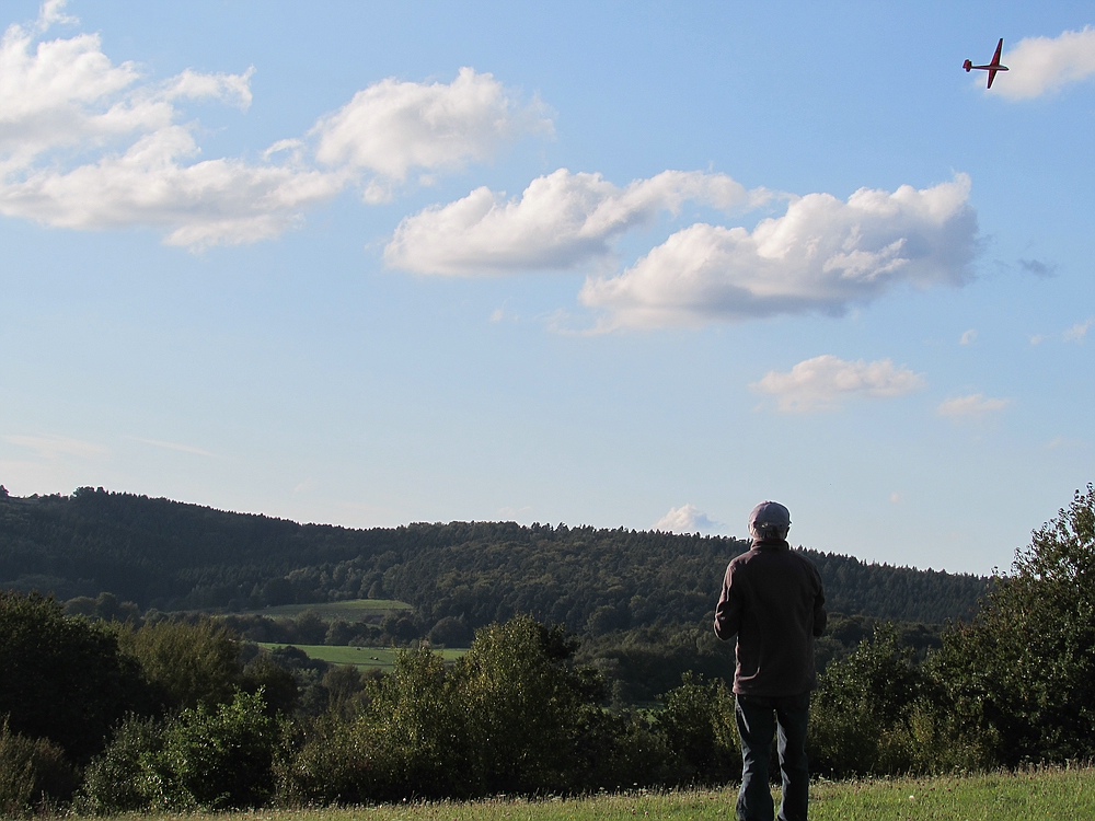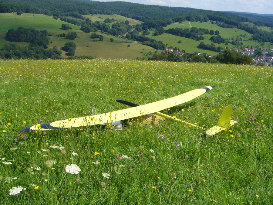 Der Wetterbericht hatte eigentlich für heute ziemlich viel Regen vorausgesagt, aber außer ein paar Tropfen blieb es trocken und als sogar die Sonne raus kam lockte sie mich zum Spessartsegler-Vereinshang aus der Werkstatt.