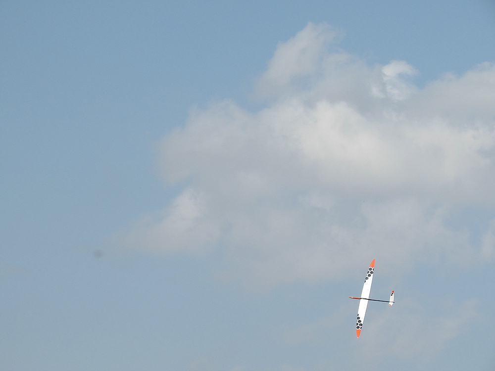 Am Spätnachmittag wurde die Thermik großräumiger und Helmut hat mit seiner schönen Mucha nicht nur den ersten Looping geflogen, in der Abendthermik ist er damit richtig rumgeheizt......zumindest für einen Oldtimer bei dem er Anfangs einige Zeit gebraucht hat um die richtigen Einstellungen zu finden.