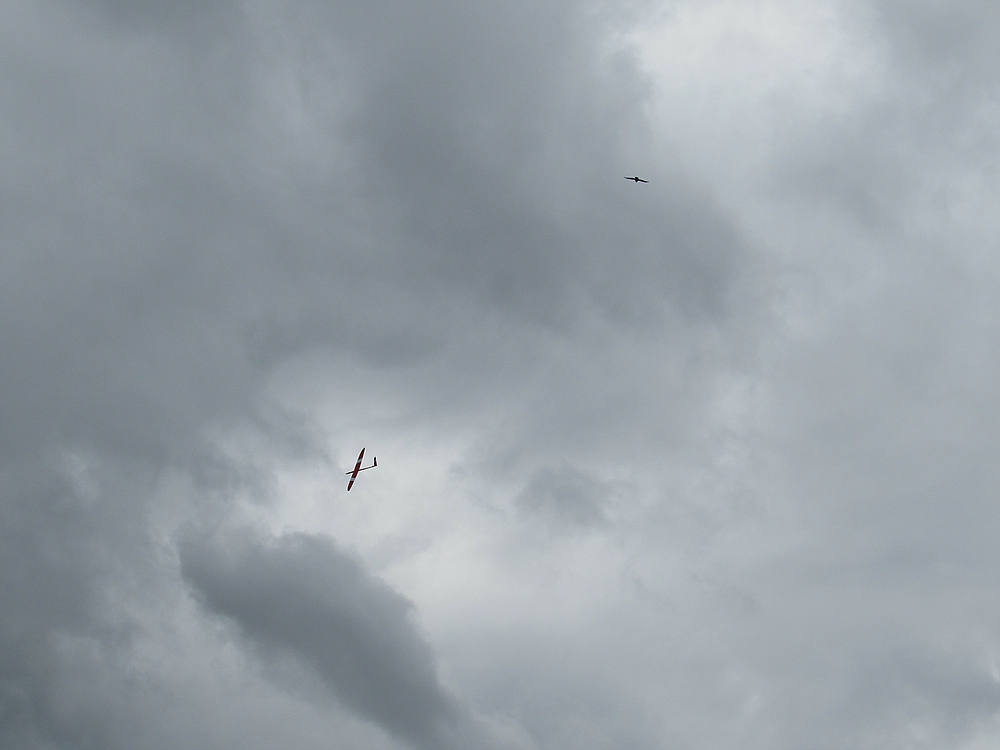 Wir haben das beste draus gemacht. Uwe hat seinen Fresh in die Jeti programmiert und die Grundeinstellungen für die Bremse erflogen, als der Wind dann zulegte waren Rock It, Scandera und Miniray auch noch dran, incl. DS. Gegen 18:00 Uhr rum waren dann Regenschauer im Anmarsch und auch fürs fliegen Feierabend.