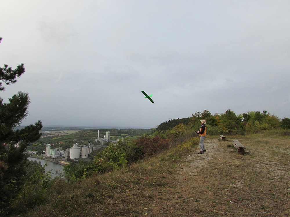 Das Schaumfliegerle fliegt ausgezeichnet und blieb am Ende sogar bei kaum noch spürbarem Wind in der Abendthermik oben :thumbup: