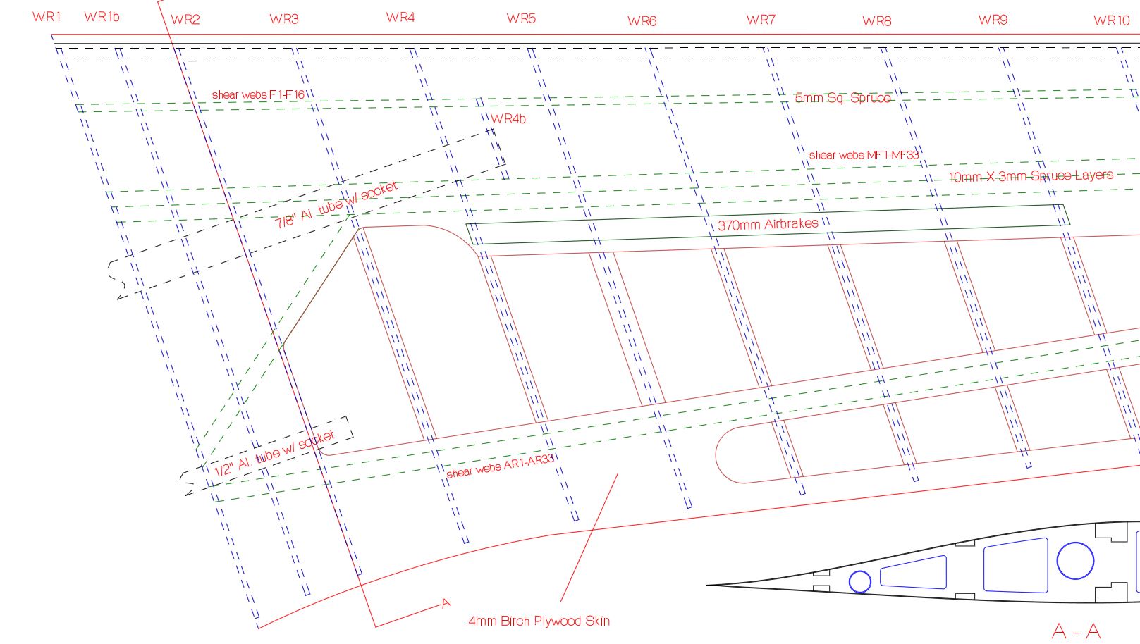 Darüber hinaus hat er den Rippenabstand des Flügels dem original angepasst und auch mit mit Halbrippen vor dem Spant zur Nasenleiste hinzugefügt.
