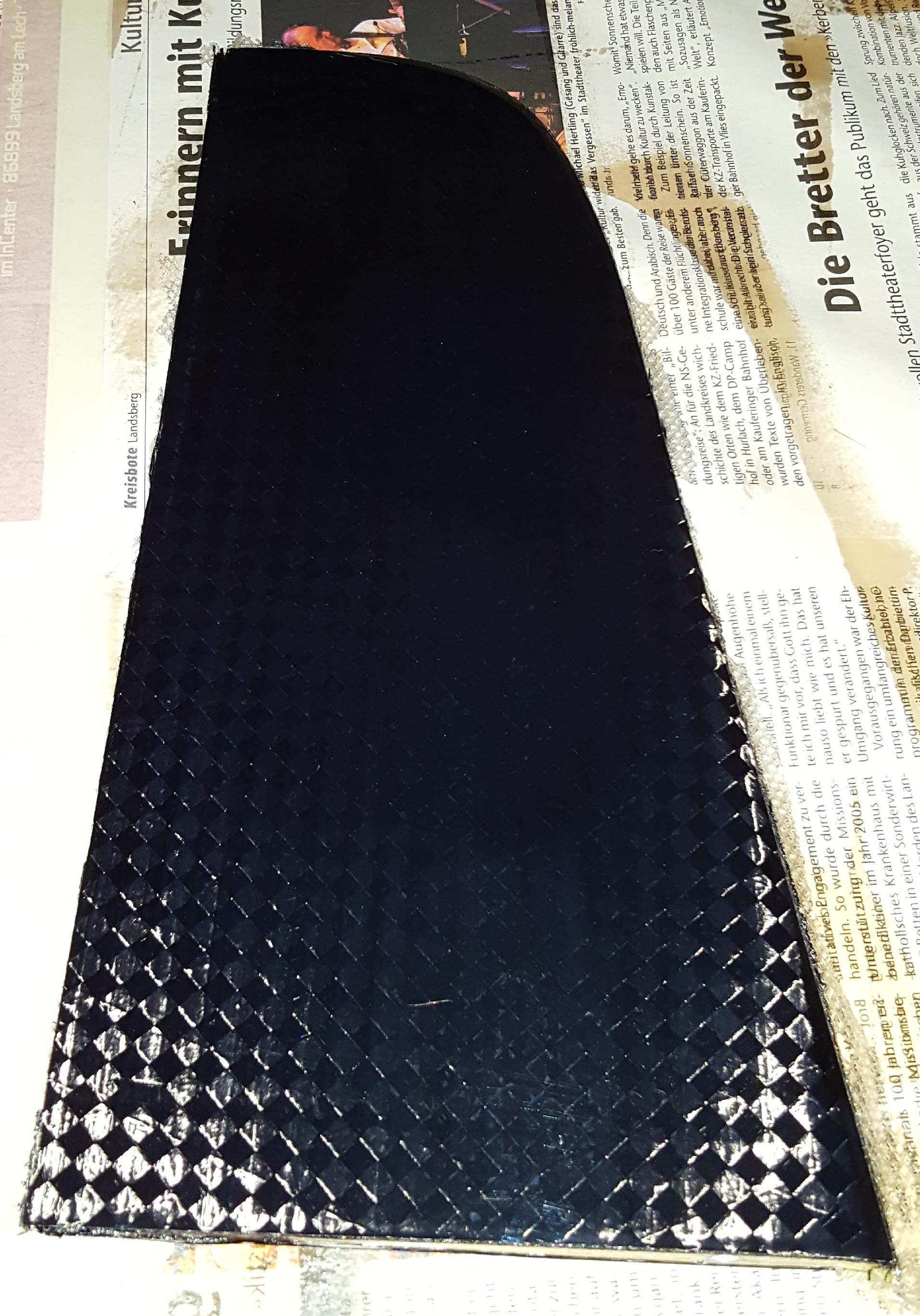 Die Mylarfolien werden zugeschnitten, mit PAD Wachs imprägniert, poliert und mit transparentem Gelcoat gestrichen.