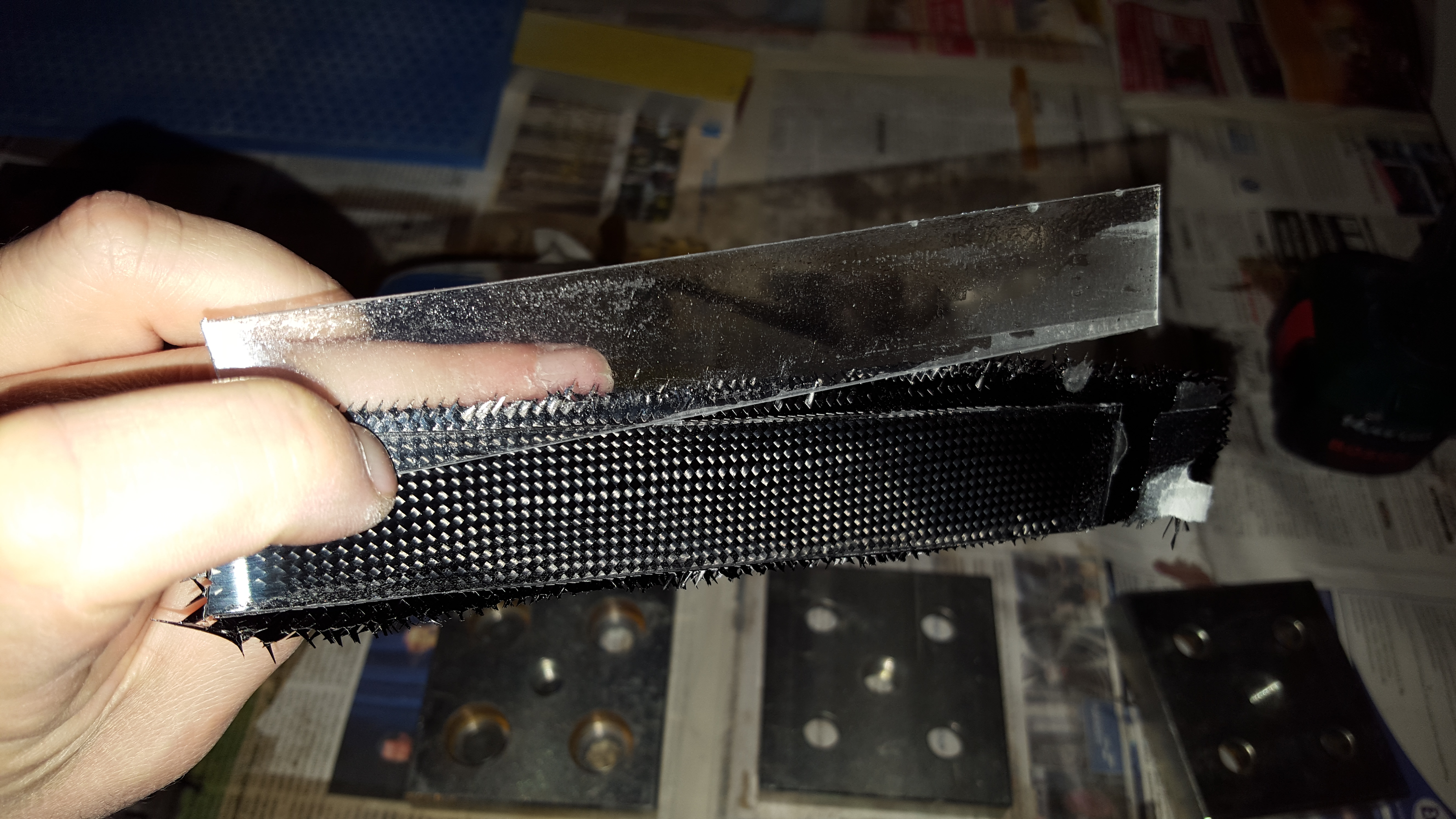 Ich schneide das CFK dann immer ca. 5-mm breiter zu als das Kevlar Band.