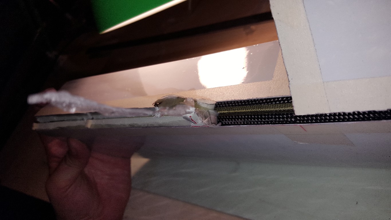 Bisher hatte ich nur die Balsa Seitenflossen und Querruder meiner EPP Flügel mit 40-g CFK Spread Trow Gewebe diagonal beschichtet.
