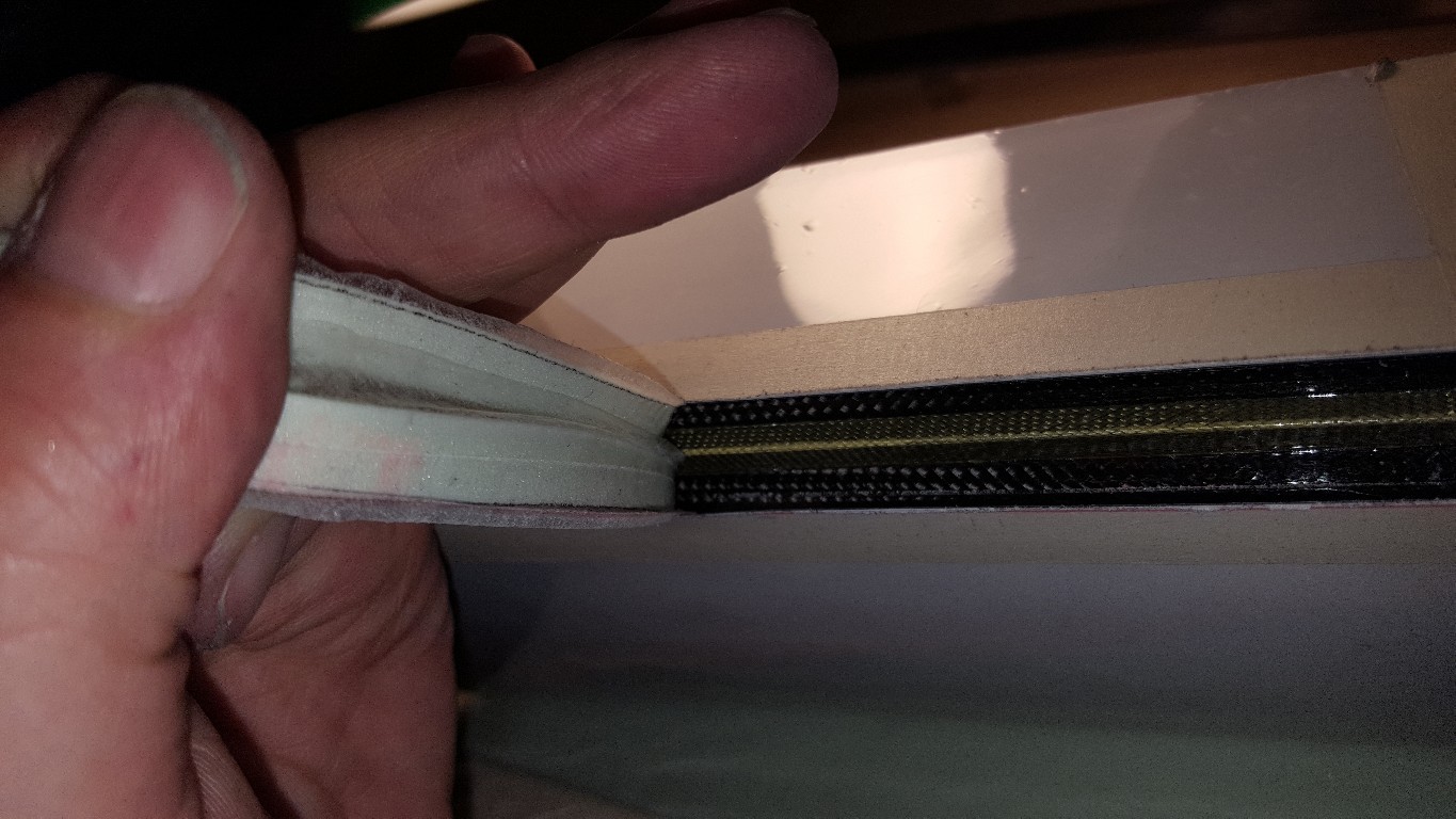 Dadurch habe ich eine enorme Torsionssteifigkeit erreicht und durch Verwendung der Mylar Bänder ergab das eine tolle CFK Sichtoberfläche.
