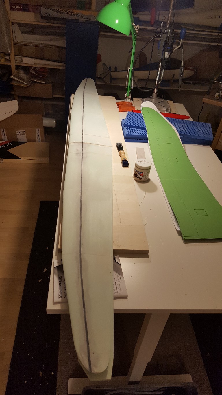 Die Tage habe ich frei, da werde ich noch ein bisschen was zum Zweiten Flügel und den Bau der Rumpfform einstellen.