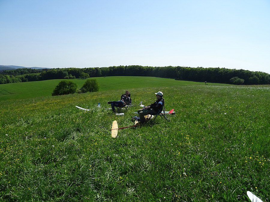 Der Hangwind reichte nicht, aber einige Thermikblasen ermöglichten dem DFS-Reiher Eigenbau von Jürgen und meiner B4 ein paar schöne Flüge. Für den Avatar reichte es sogar um permanent oben zu bleiben, da konnte ich bei dem schönen Wetter erst nach 2 Stunden aufhören und wieder einpacken :)