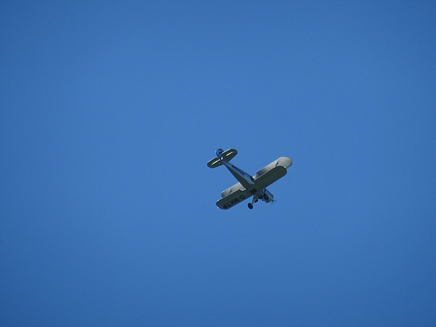 Leider habe ich mir bei der Aktion einen Flieger außer Gefecht gesetzt. Der kommt jetzt nicht mehr mit nach Irland. Ich bin echt so scheiße im Landen bei Windstille. Erst drei mal mit Karacho und viel zu viel Speed über über die Landung gebombt, dann zu lange ausgeholt, auf dem Weg zum Landeplatz verhungert und weil ich direkt auf mich zu geflogen bin habe die niedrige Geschwindigkeit nicht bemerkt.