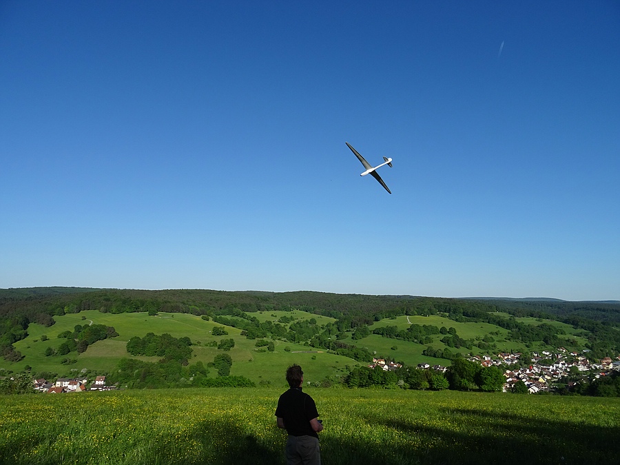 Dann heute also lieber fliegen....die Bedingungen waren Anfangs sehr unterschiedlich, neben guten Tragen gab es heftiges Saufen, aber im Laufe des Nachmittags wurde das Tragen immer gleichmäßiger und das Saufen immer seltener. Auch ein paar DS-Runden hinter den linken Bäumen konnte ich testweise drehen. Ein schöner Flugnachmittag mit den netten Kollegen, so kann das lange Wochenende weiter gehen