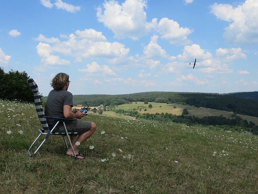 Ich war wegen Werkstatttag heute erst spät an einem Nordwesthang, den ich derzeit bei verschiedenen Bedingungen neu anteste. Heute drehte der Wind öfter auf Nord und kam damit über eine Waldkante, die das Tragen störte. Insgesamt war es heute recht bockig da, aber ein paar Thermikblasen konnte ich mit dem Rock It und dem X-Res in dem Stündchen am Hang doch ausfliegenNurflügelfan hat geschrieben: ↑So 8. Jul 2018, 19:58Deshalb habe ich ihn heute dazu überredet mit mir an einen kleinen Nordhang zu fahren.