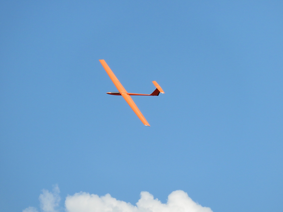 Aus Elmars neuer Form sind in letzter Zeit einige Rümpfe geschlüpft und vor allem Lutz fliegt den Typ sehr oft. Sein oranger ist mit einem klassischen Einfachtrapezflügel und T-Leitwerk aufgebaut und damit kann ich vor Baubeginn schon mal zeigen wie mein Whisper-DS mal in etwa aussehen soll, denn ich habe mich für die gleiche Konfiguration entschieden: