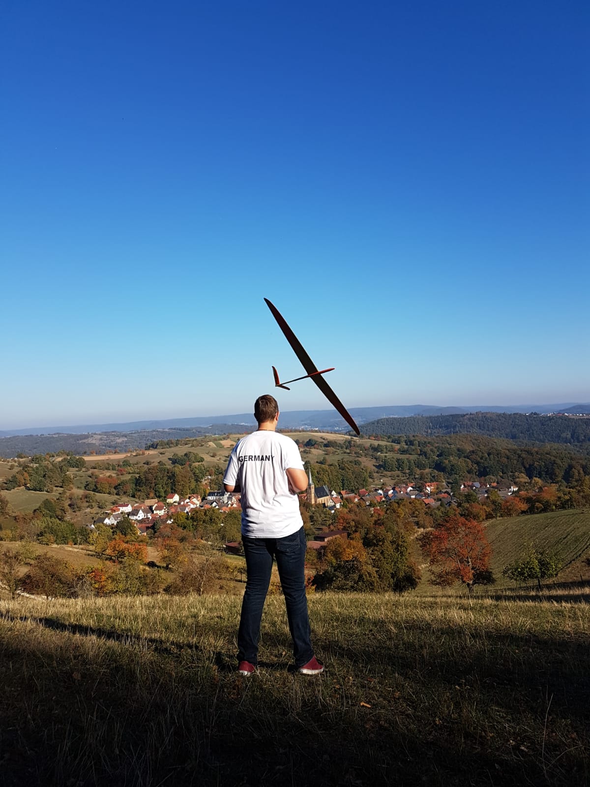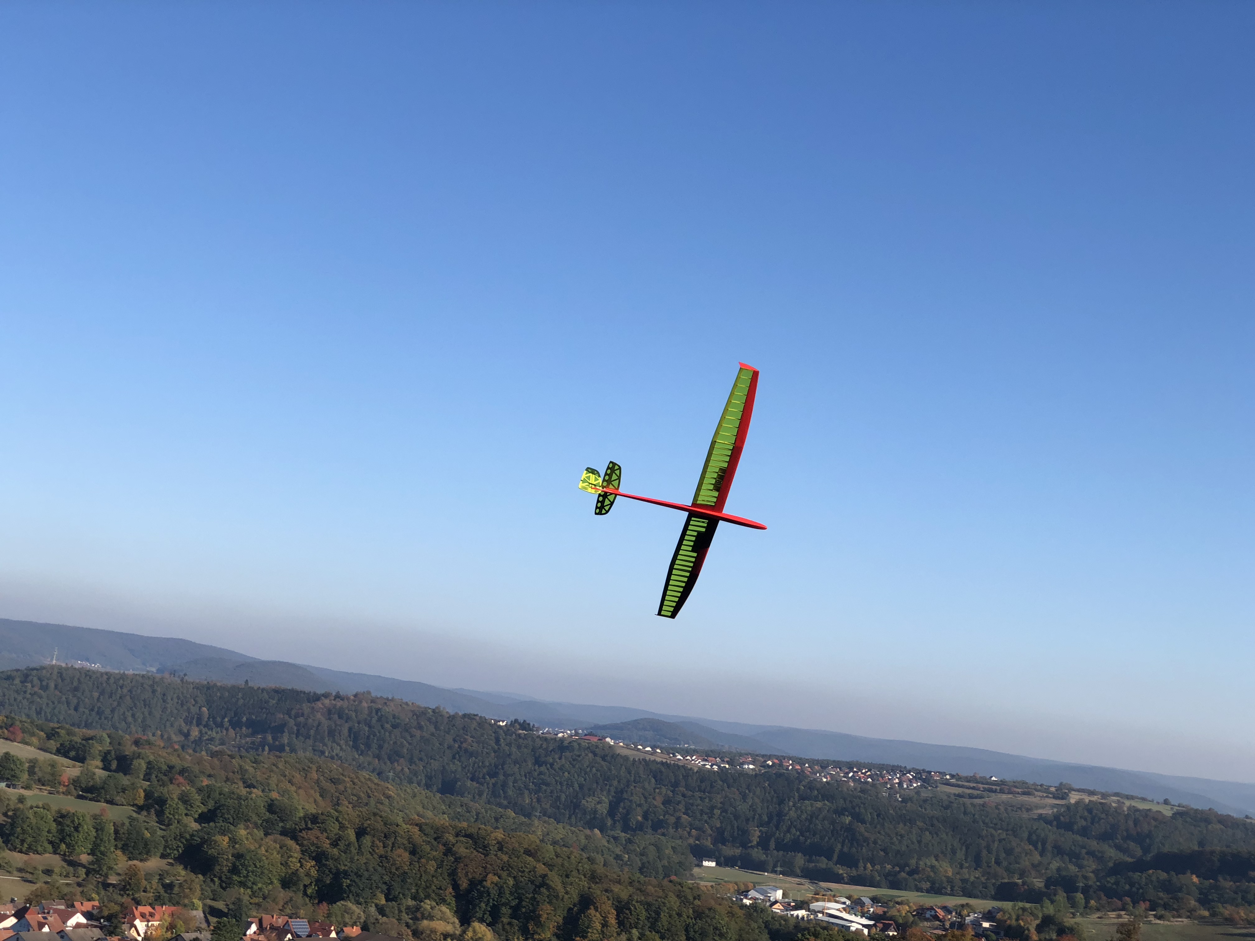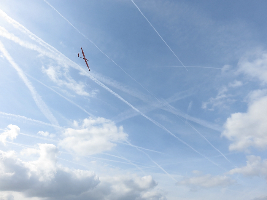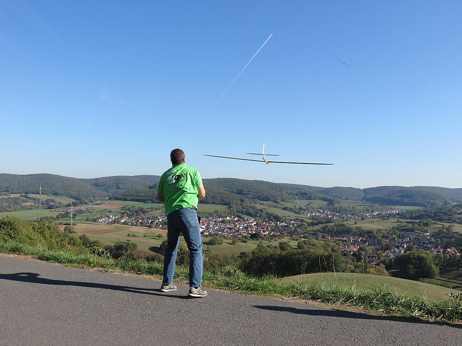 Heute bei viel Sonne ein Traumtag. Den Wind haben wir ja Richtung Rügen geschickt, deshalb nur 10-20 km/h am Vormittag, der am Nachmittag auf 0-5 km/h abflaute. Die Böen mit 20 km/h waren mit X3 und Pitbull gut für rund 170 km/h im DS, Nachmittags ging es in der Thermik mit Bussarden bis 270 m, ohne Bussarde bis 400 m über Startstelle, auch im eigentlichen DS-Lee über dem Kratersee!
