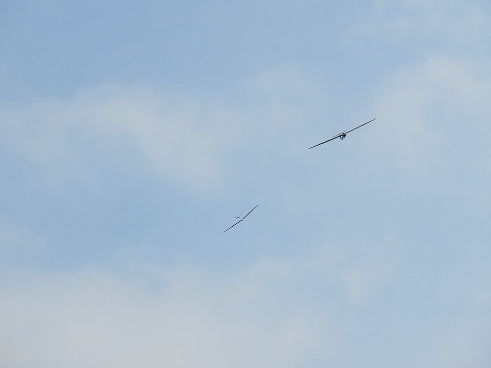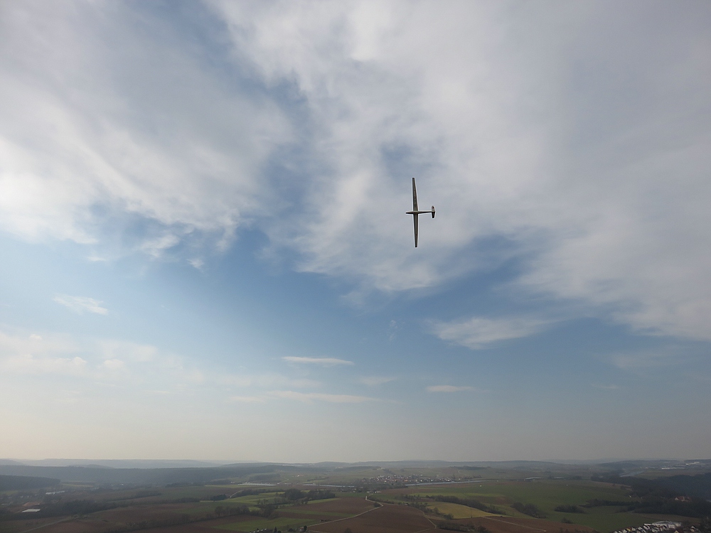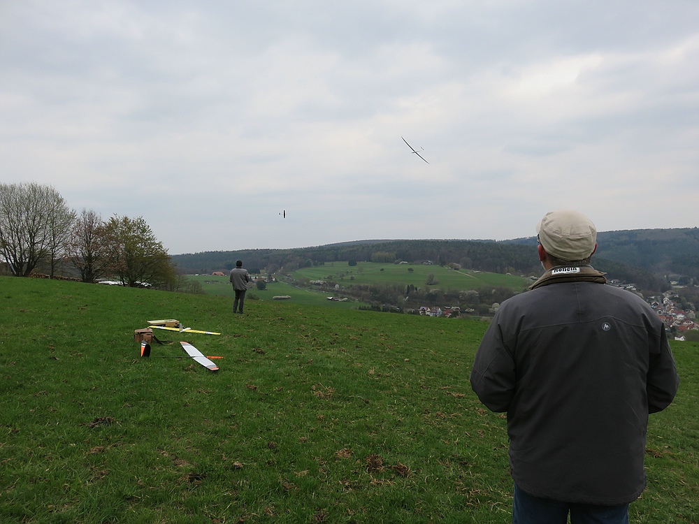 Heute war es ziemlich kühl am Osthang und der Wind kam meist mit etwa 2 bft aus Nordost, aber trotz 8/8 Bewölkung gab es nach anfänglichem rumhungern zeitweise gute, hoch tragende Thermik.