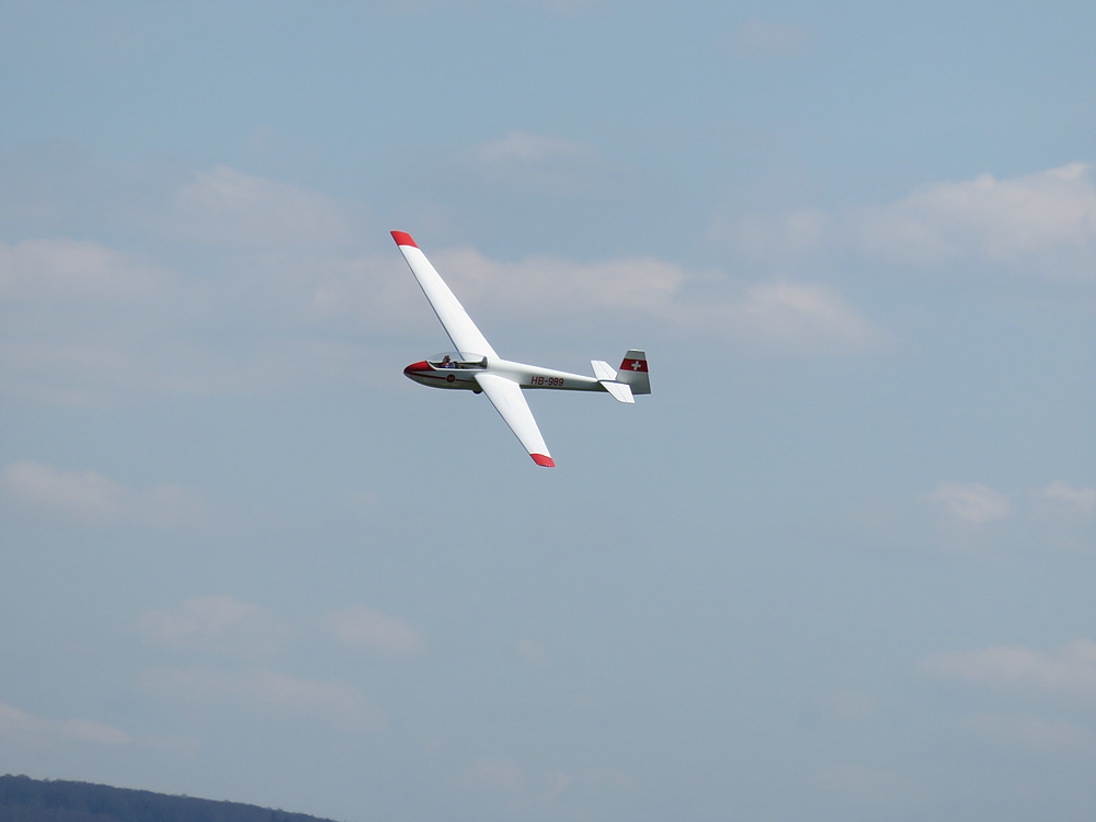 Heute war es ziemlich kühl am Osthang und der Wind kam meist mit etwa 2 bft aus Nordost, aber trotz 8/8 Bewölkung gab es nach anfänglichem rumhungern zeitweise gute, hoch tragende Thermik.