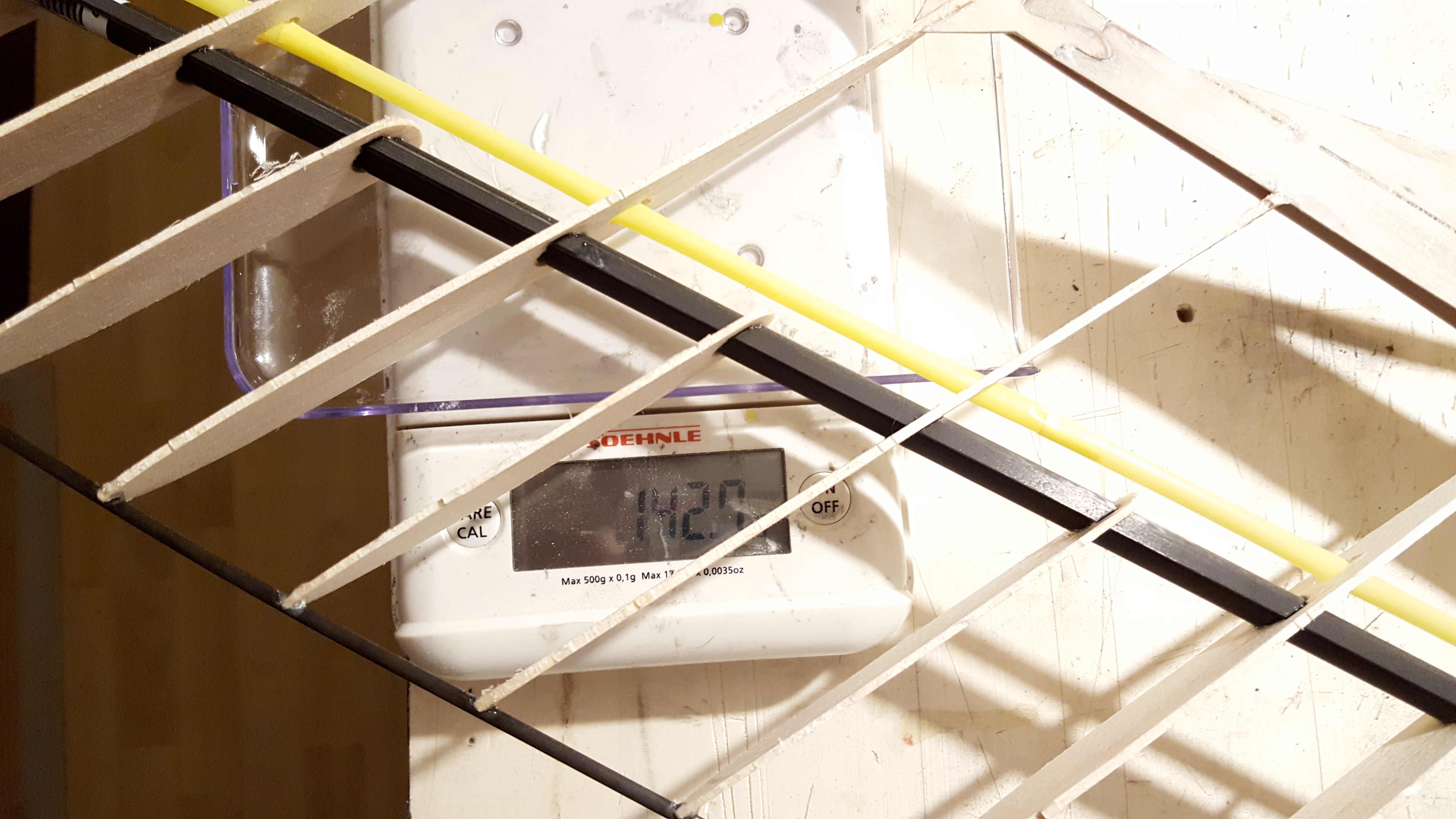 Nehmen wir also mal als Beispiel meinen 550 g ARES und meinen 630 g X-RES. Flächenbelastung beim X-RES ist dann etwa 14,4 g/dm², beim ARES ebenfalls 14,4 g/dm², also Gleichstand bei der erwarteten Sinkgeschwindigkeit trotz unterschiedlichem Gewicht.